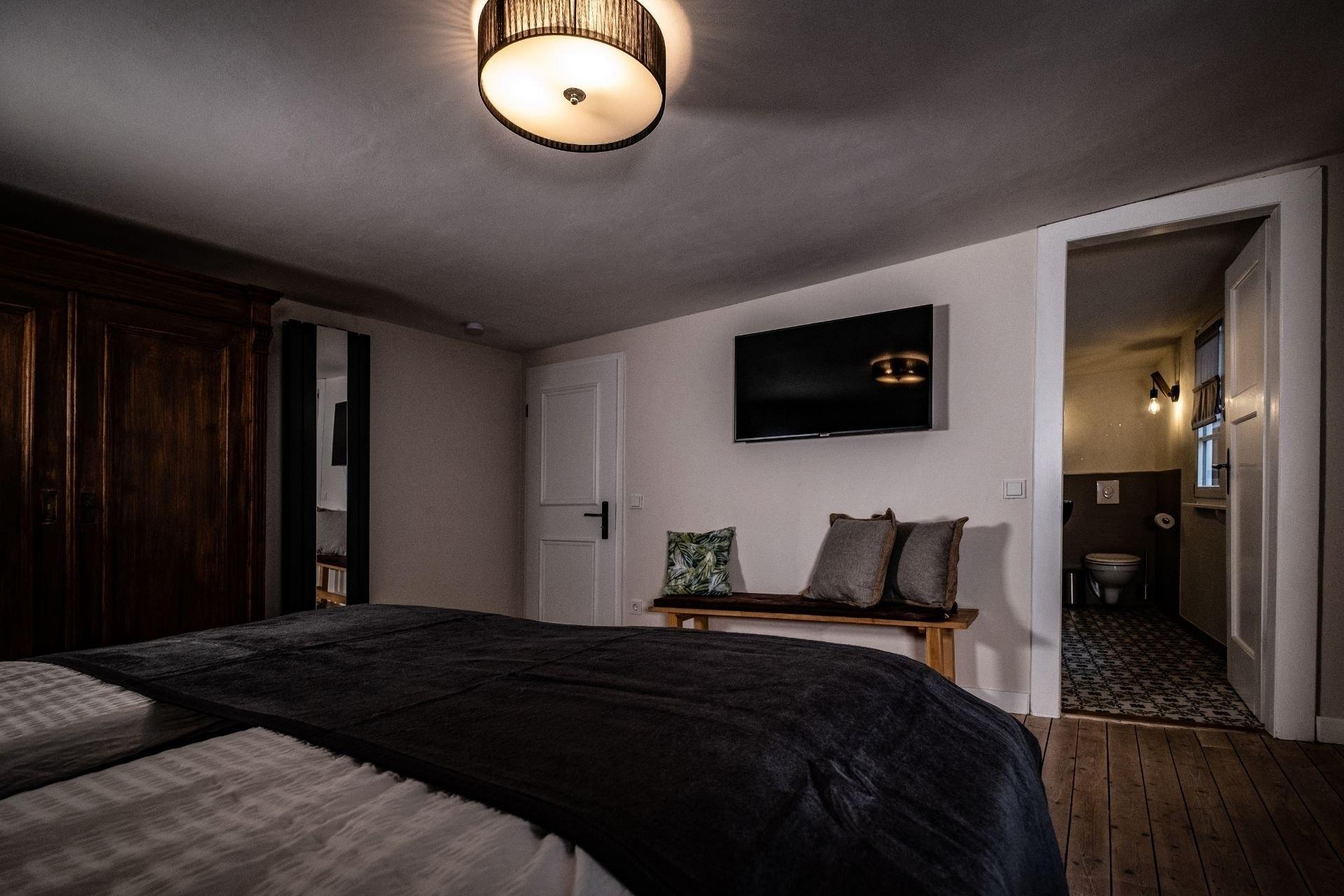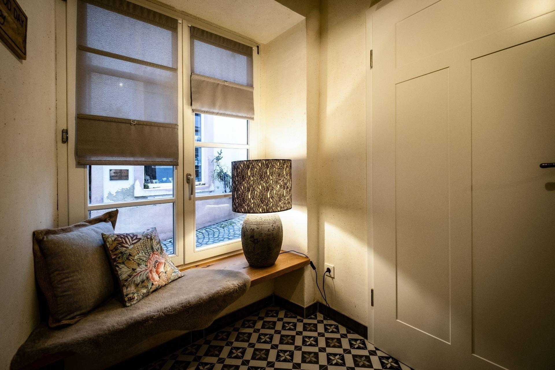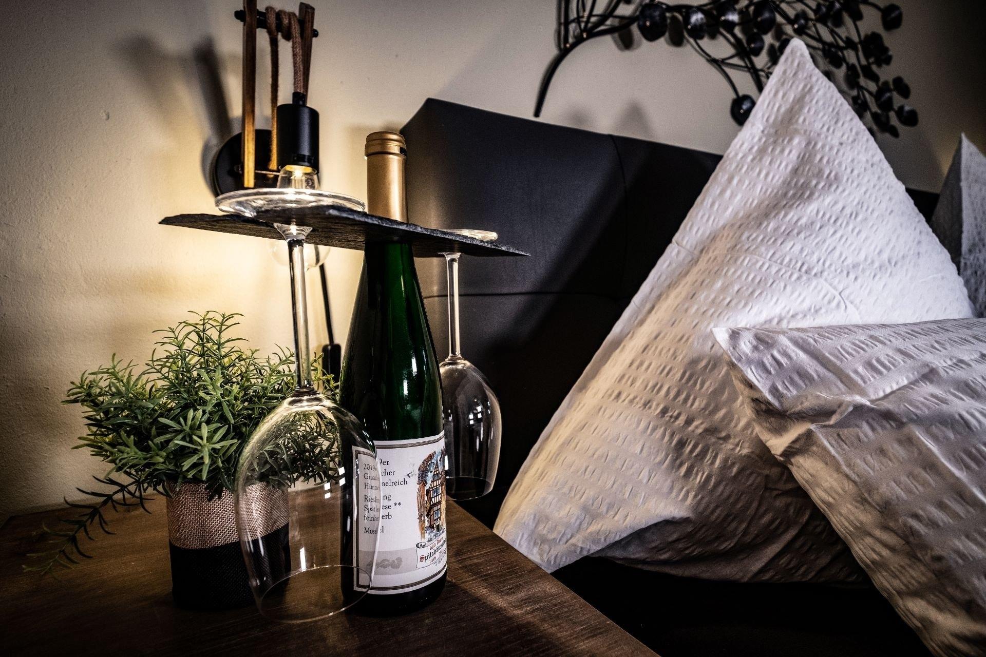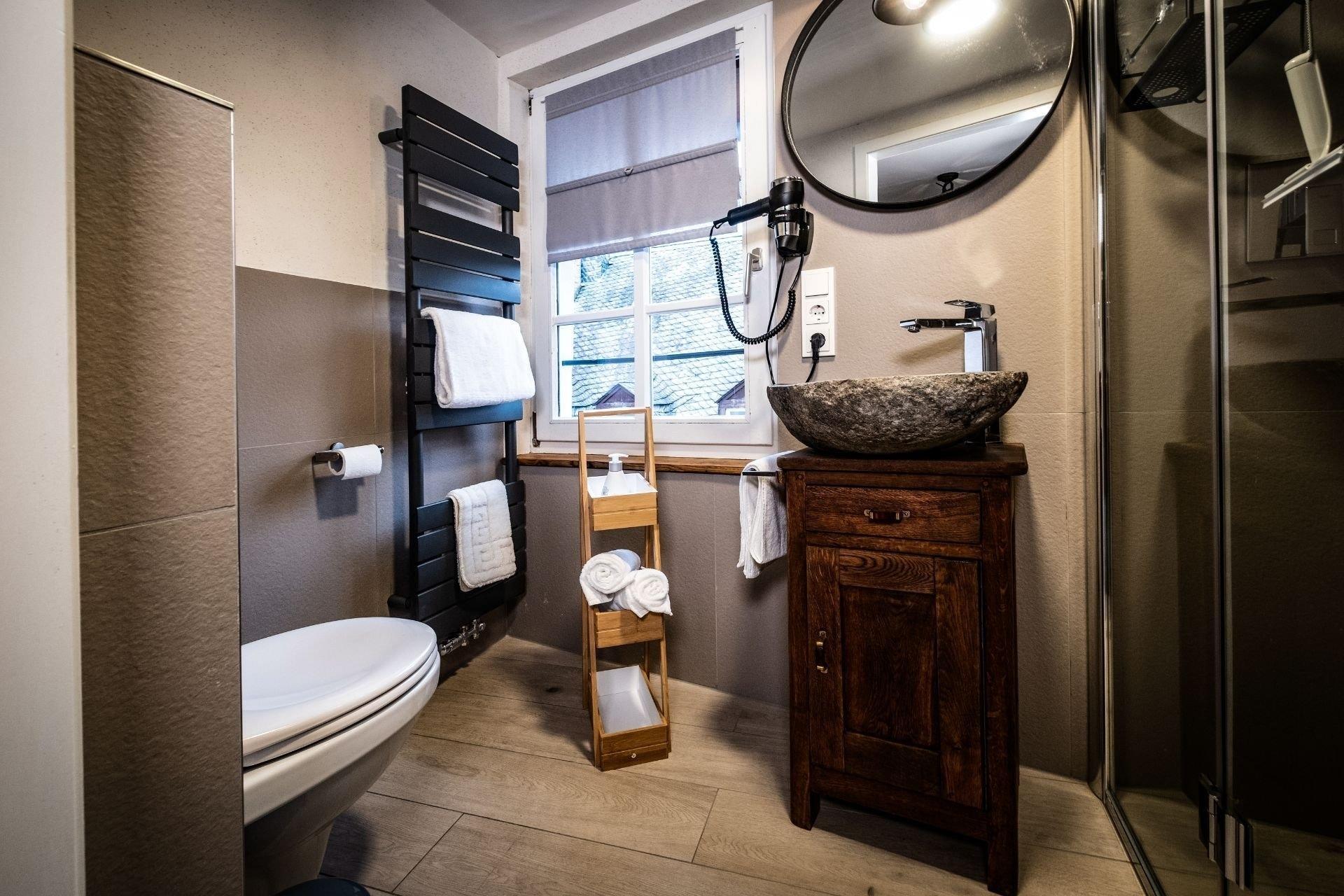 Die Suite 44 in Bernkastel-Kues für 4 Personen verfügt über 1 Schlafzimmer mit Bad, sowie ein weiteres Schlafzimmer mit separatem Badezimmer, einer Bio-Lehm-Sauna, Regendusche in jedem Badezimmer, einer Wohnküche und einen gemütlichen Wohn/Essbereich um die Abende bei einer Flasche Wein mit Freunden ausklingen zu lassen.Bei der Renovierung war es uns sehr wichtig den Charme des alten Gebäudes wirken zu lassen. Daher wurden ausschließlich Naturbaustoffen verwendet. Alle Wände sind mit Lehm verputzt und in mancher Wand sind kleine glitzernde Highlights eingearbeitet. Gehen Sie auf Entdeckungstour in unserem kleinen Stadthaus. Vielleicht entdecken Sie noch selber manche Besonderheiten.