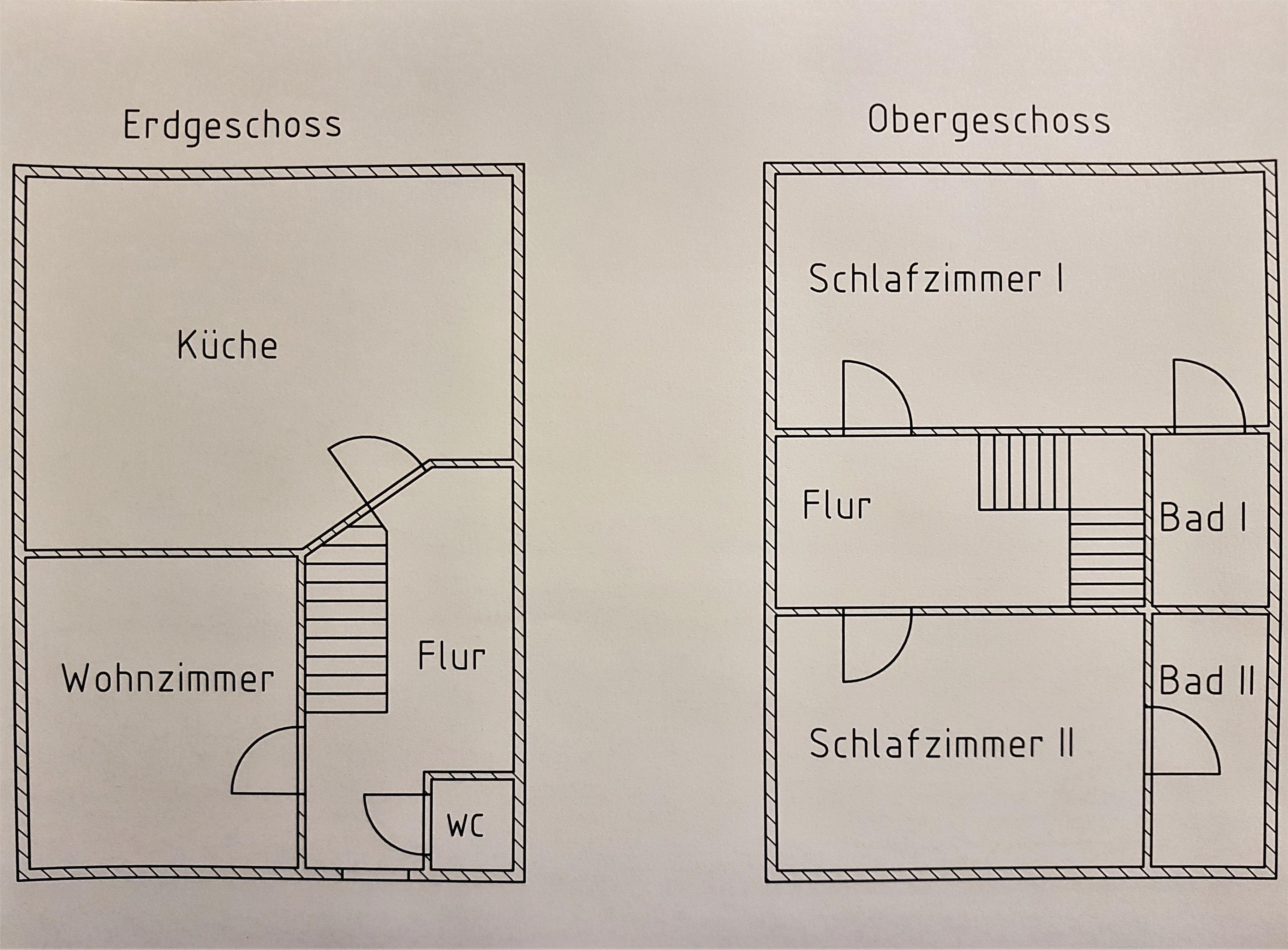 Im Obergeschoss befindet sich Schlafzimmer I mit Doppelbett und Wohnbereich und TV. Hieran gliedert sich das Bad mit Dusche und WC. Sowie Schlafzimmer II mit Tageslicht-Bad/WC.