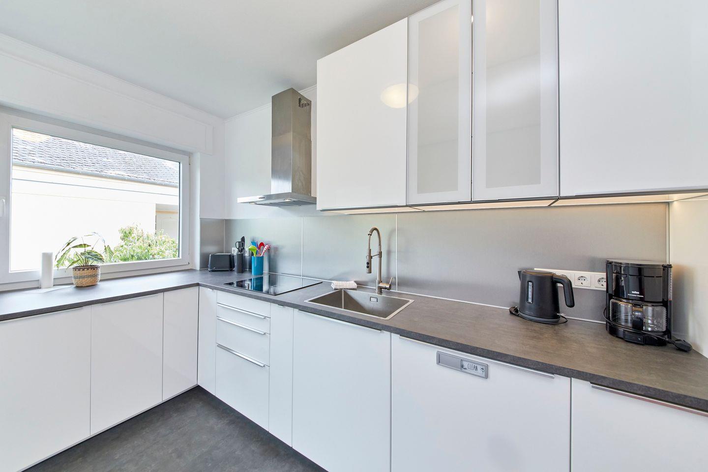 Fewo Bine in Bernkastel-Kues: geräumige 100 m² Parterre-Ferienwohnung für 2 Personen, Küche mit Spülmaschine, Backofen, Herd sowie Kühlschrank mit Gefrierfach.