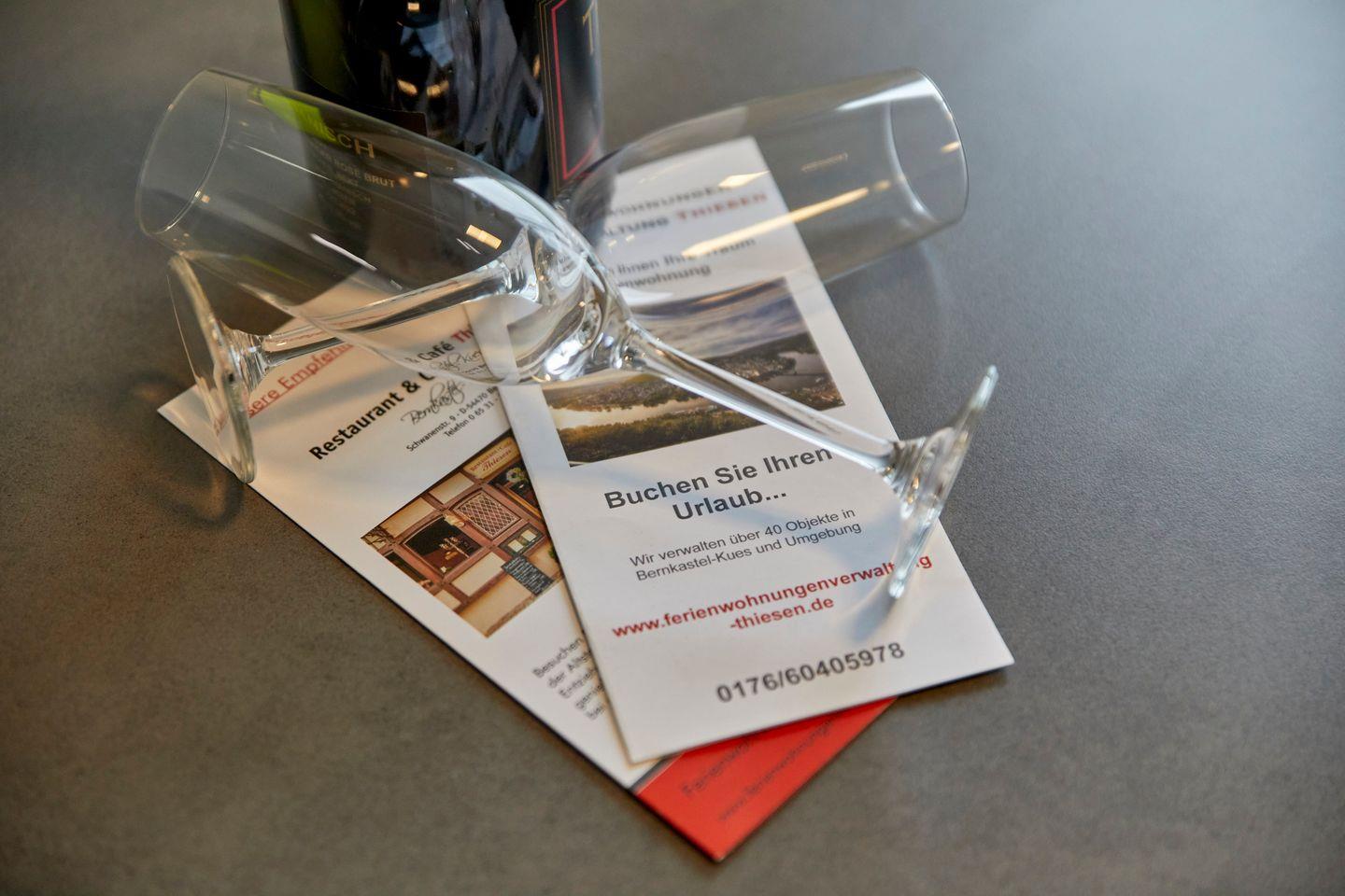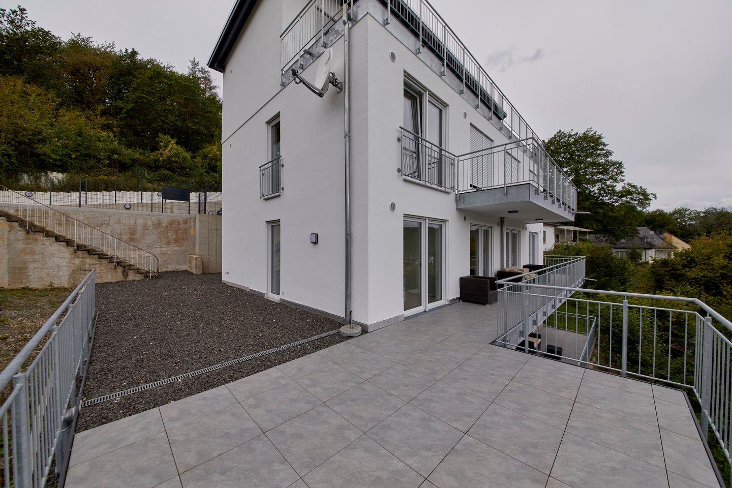 Anschrift: Bergweg 4954470 Bernkastel-KuesModerne, luxuriöse und großzügig geschnittene Wohnung in Hanglage im Ortsteil Kues. Von der großen Terrasse genießt man den Panoramablick über das Moseltal und Bernkastel-Kues. Equipment: Offener Wohnbereich mit Küche & Essbereich1 x Schlafzimmer mit Boxspring-Doppelbett (1,80 x 2,00 m)1 x Schlafzimmer mit Doppelbett (1,60 x 2,00 m)2 x großes Bad mit ebenerdiger Dusche & WC1 x große Terrasse mit PanoramablickGaragenstellplatzFahrrad-Unterstand in GarageWLAN