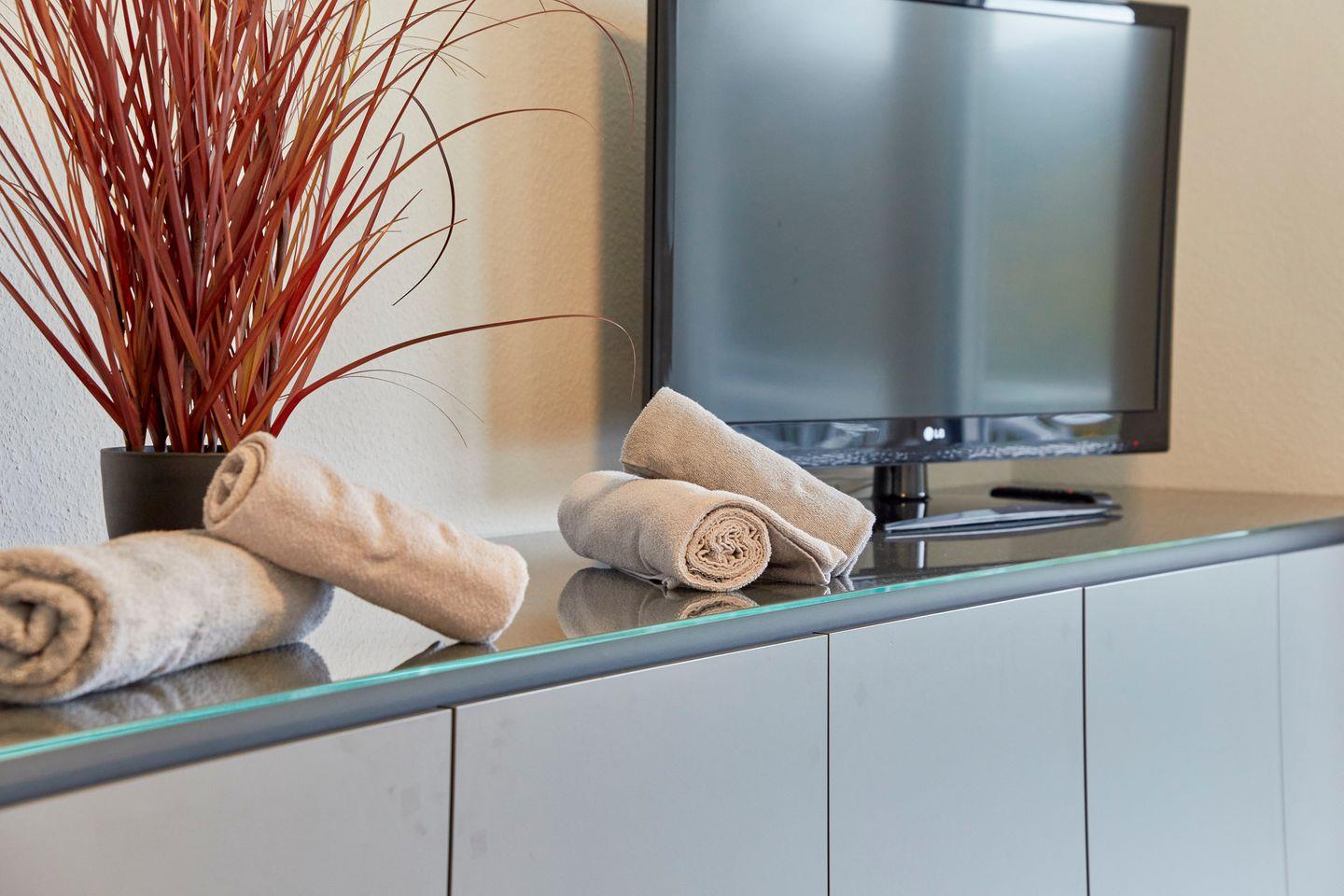 Ein Grundstock an Handtücher und Verbrauchsgüter (Seife, Toilettenpapier, Spülmaschinentabs, Spülmittel, Müllbeutel) sind in der Wohnung vorhanden.