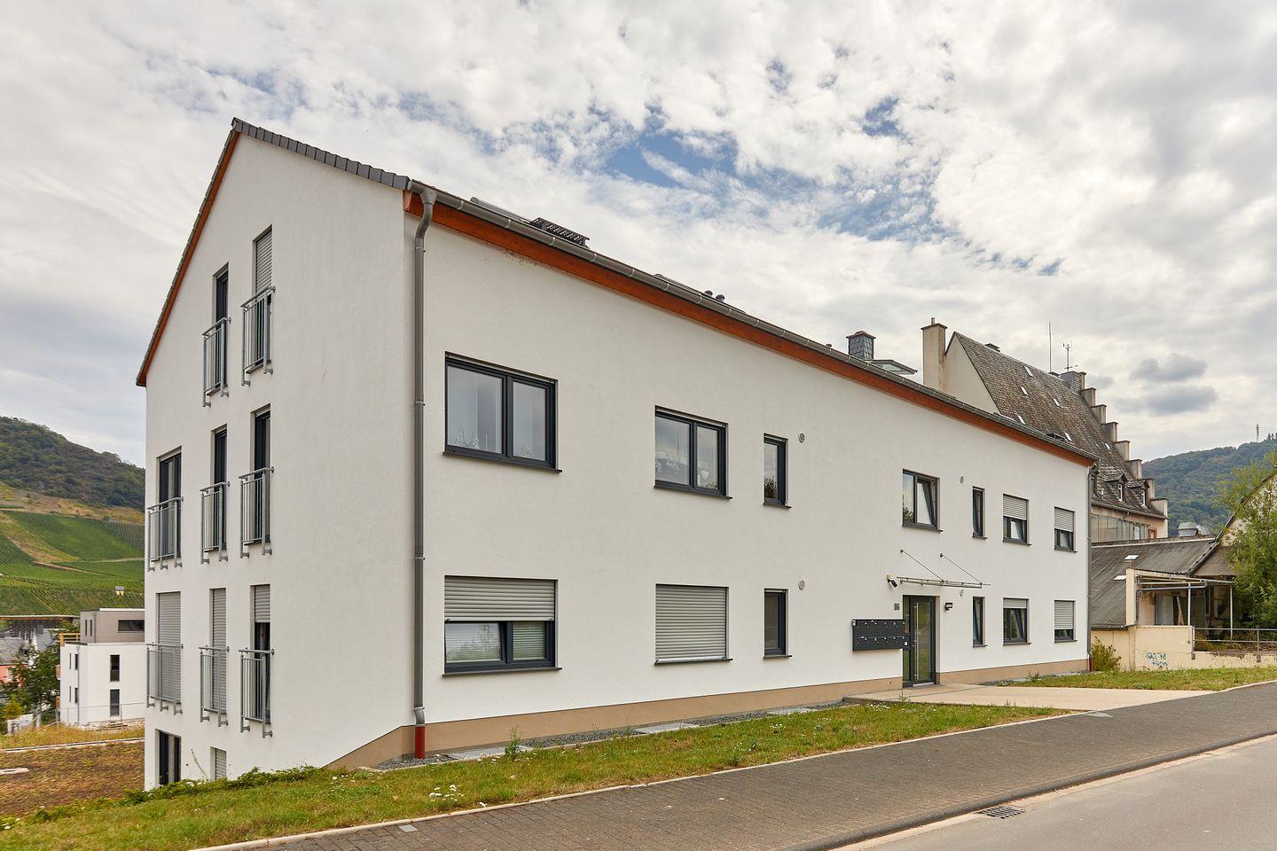 Anschrift:Brüningstr. 8654470 Bernkastel-KuesModerne, helle Wohnung im Stadtteil Kues, zentrale Lage, Erdgeschosswohnung – barrierefrei. Ausstattung:2 Schlafzimmer (1 x 1,80 x 2,00 m und 1 x 1,60 x 2,00 Boxspringbetten)Wohn- / Esszimmer mit offener Küche Bad mit ebenerdiger DuscheGäste WCAbstellraumBalkon1 Stellplatz TiefgarageWLAN