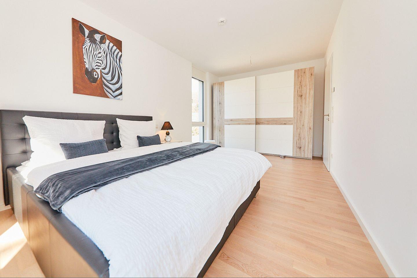 2 Schlafzimmer (je 1,80 x 2,00 m Bett, offenes Fußende)
