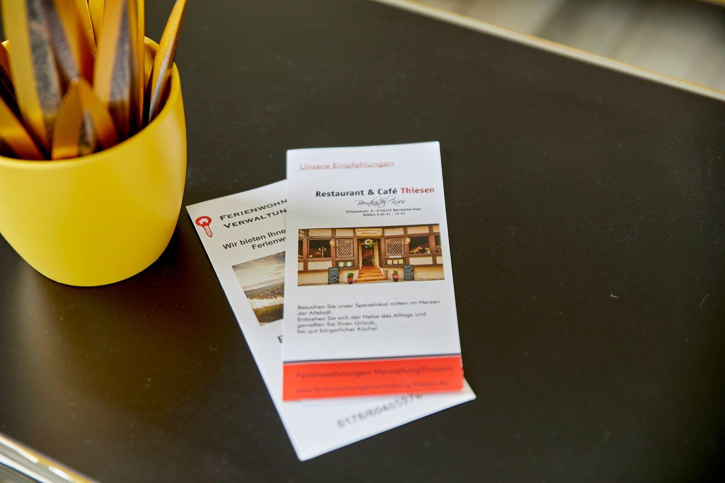 Gretel in Bernkastel-Kues ist eine 90 m² große Nichtraucher-Unterkunft im Tiefparterre mit insgesamt Wohn, Esszimmer mit Küchenzeile, 2 Schlafzimmern und 1 Badezimmer – ideal für 2 bis 4 Personen. Es erwarten Sie Wohnzimmer mit Sofaecke, Essbereich und Küche sowie eine überdachte Terrasse. Heizung (Öl) und Rauchmelder sind vorhanden. Kinder und Babys willkommen, Haustiere auf Anfrage.