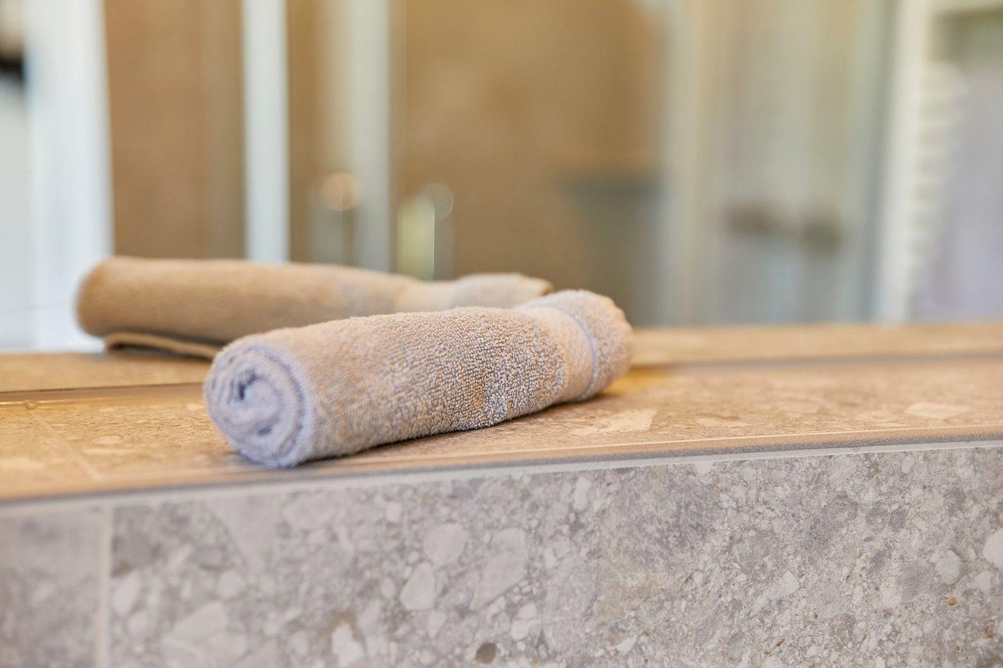 Die Betten sind bei Anreise für Sie bezogen, eine Grundstock an Handtüchern liegt bereit.