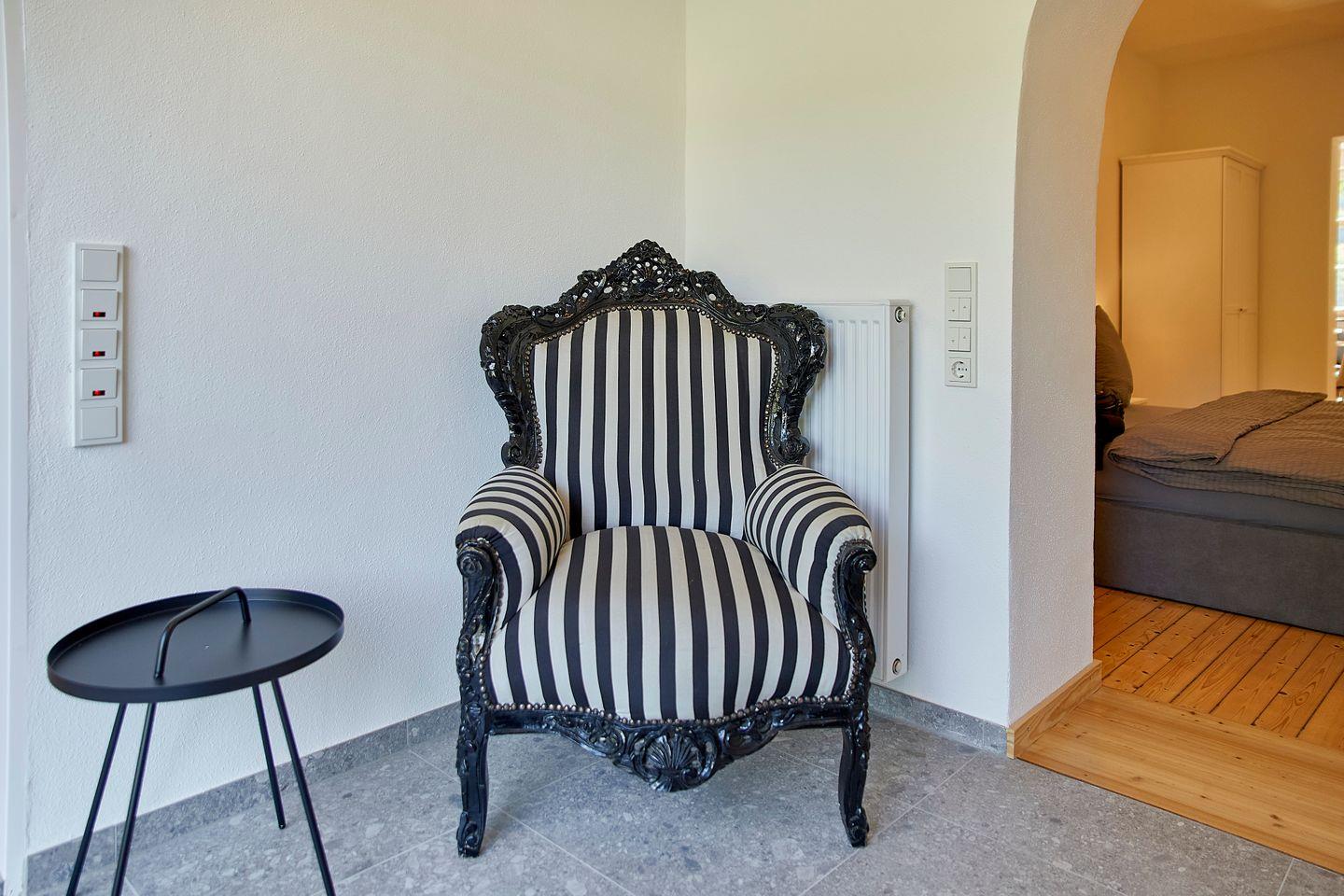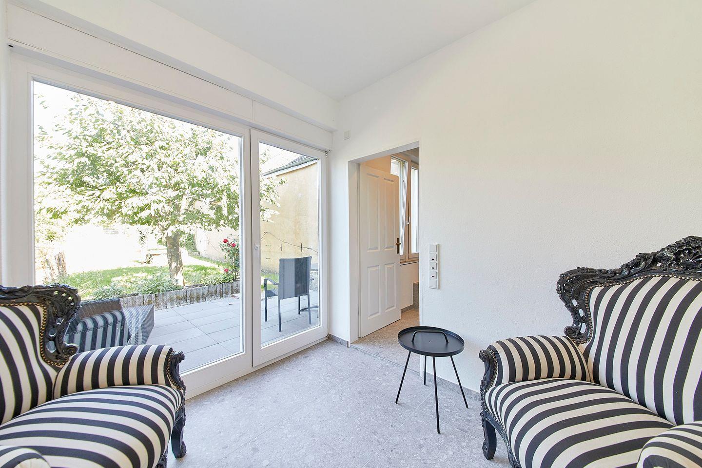 Ein kleiner Sitzbereich mit Blick in den Garten
