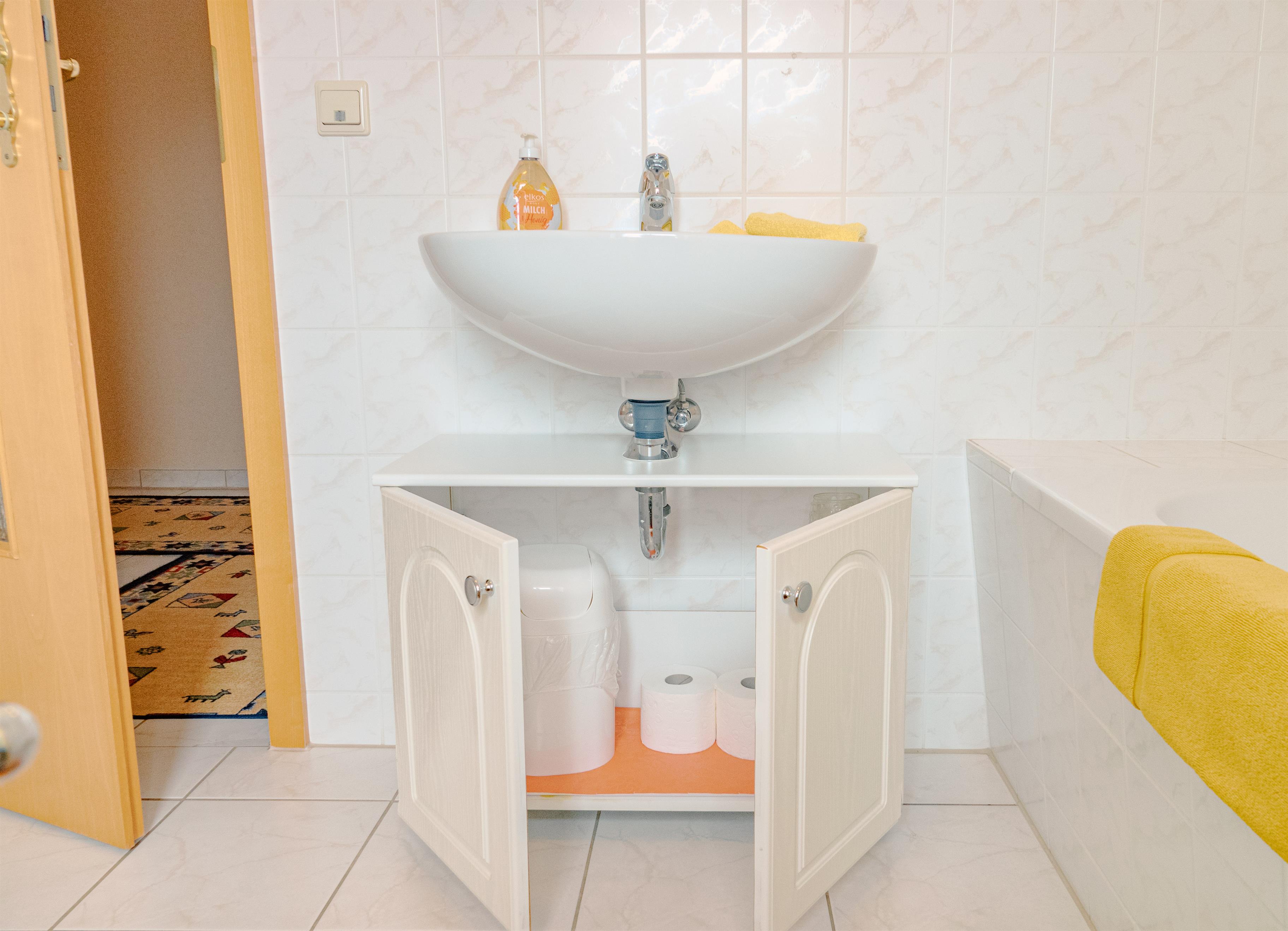 Die offene Küche ist vollständig ausgestattet und bietet alles, was für die Selbstversorgung notwendig ist. Der Wohnbereich lädt mit Sitzgelegenheit und Fernseher zum Entspannen ein. Das Bad verfügt über Dusche und Badewanne; Handtücher und Bettwäsche sind inklusive.