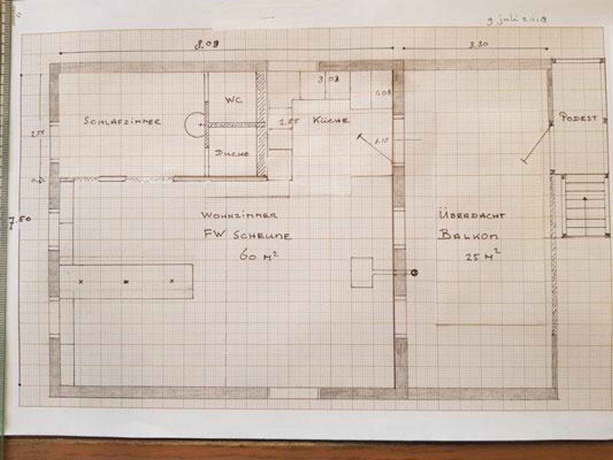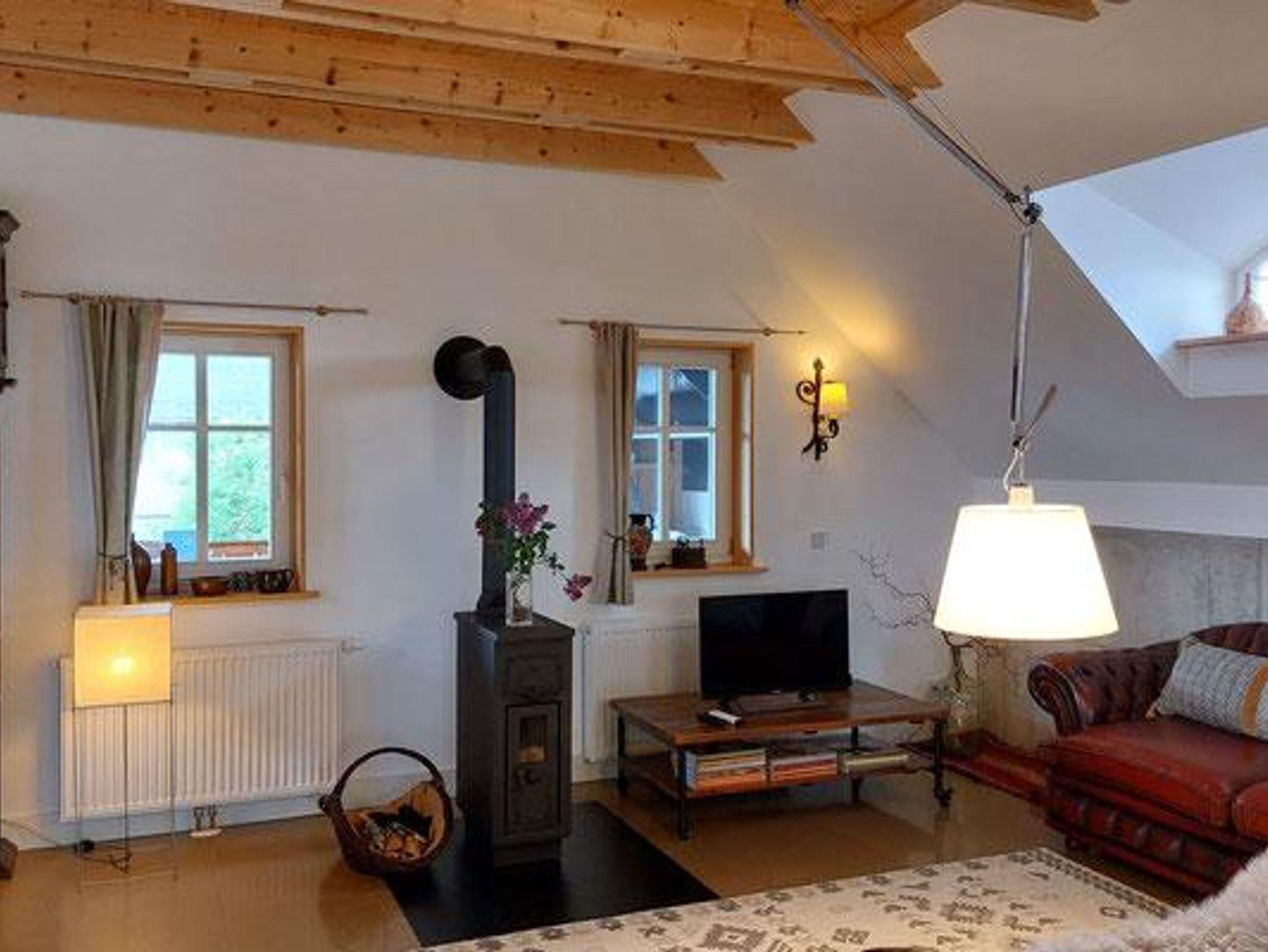 Gegenüber dem Bauernhaus haben wir eine rustikale Scheune gebaut. Diese Wohnung ist eine Mischung aus Landhaus- und Industriellerstil. Dieses freistehende Haus mit überdachtem Balkon, mit einer zweiten Terrasse im Garten und eigenem Parkplatz ist ideal für zwei Personen.