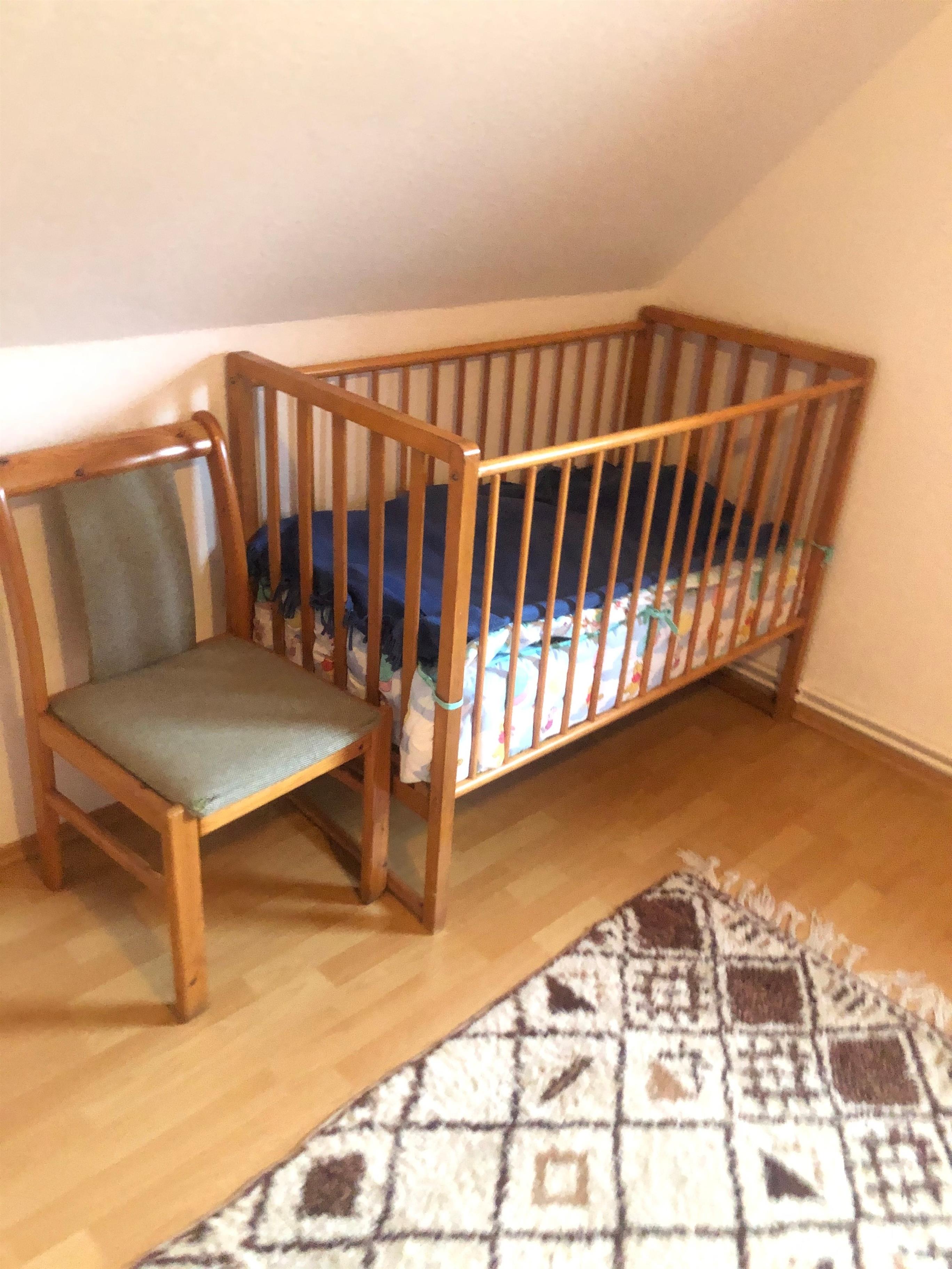 Im Obergeschoß des Hauses befinden sich 2 geräumige Schlafzimmer (Doppelzimmer mit Kinderbett, 3-Bett-Zimmer).