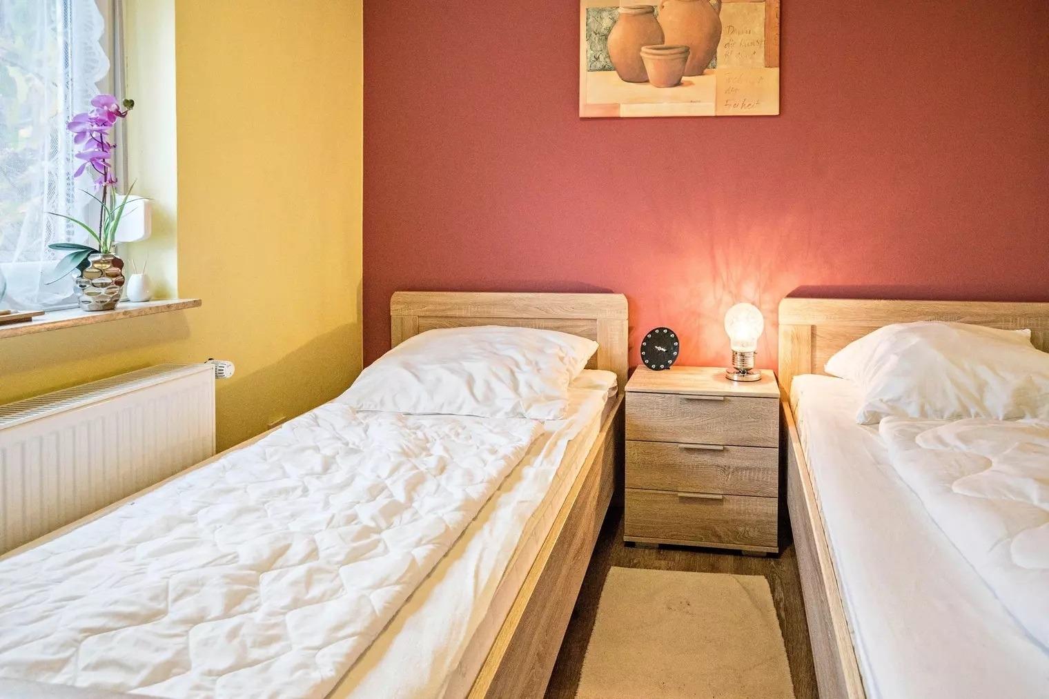 Schlafzimmer 2 hat 2 Einzelbetten.