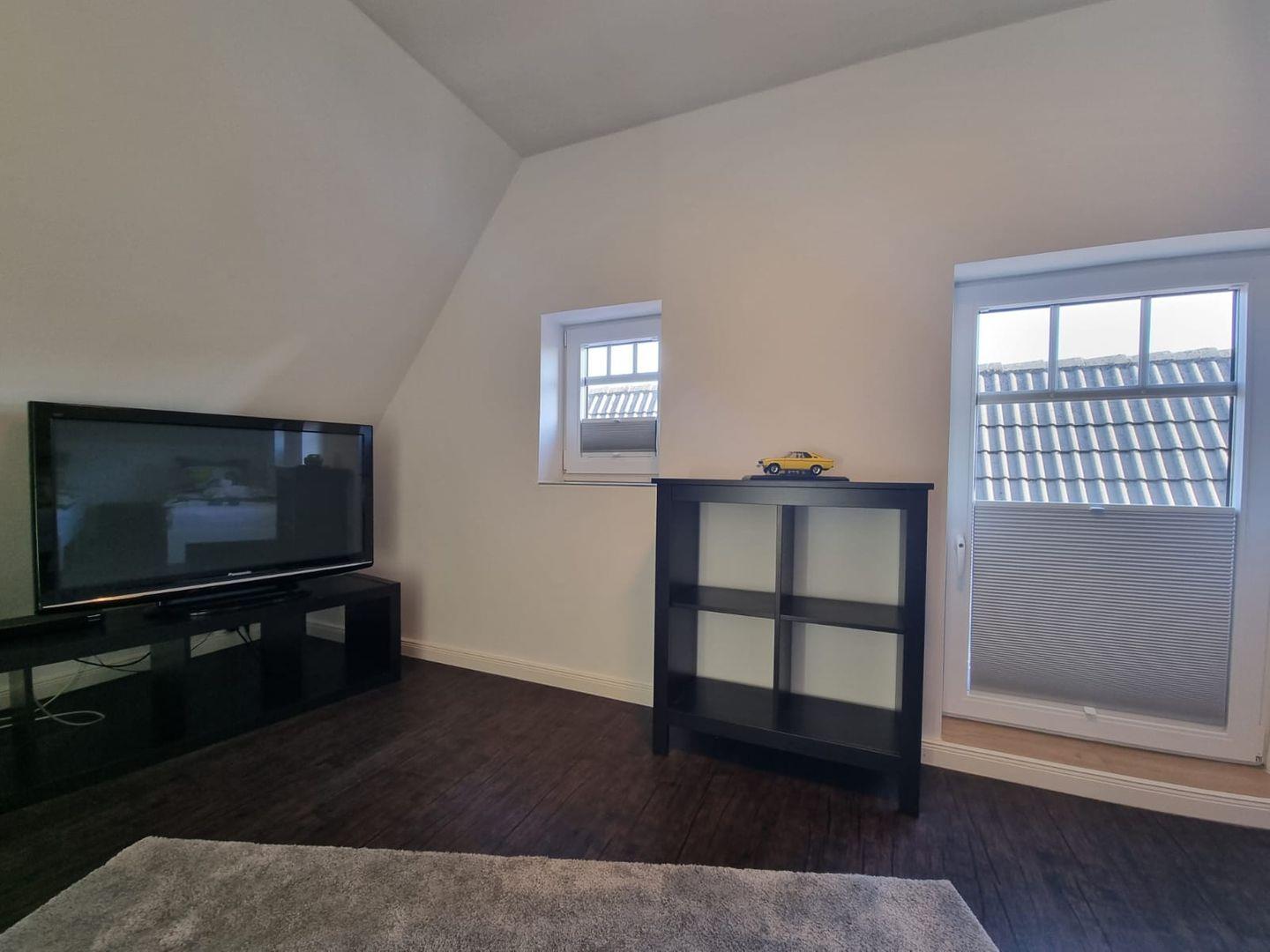 Wohnzimmer mit TV und gemütlicher Sitzecke