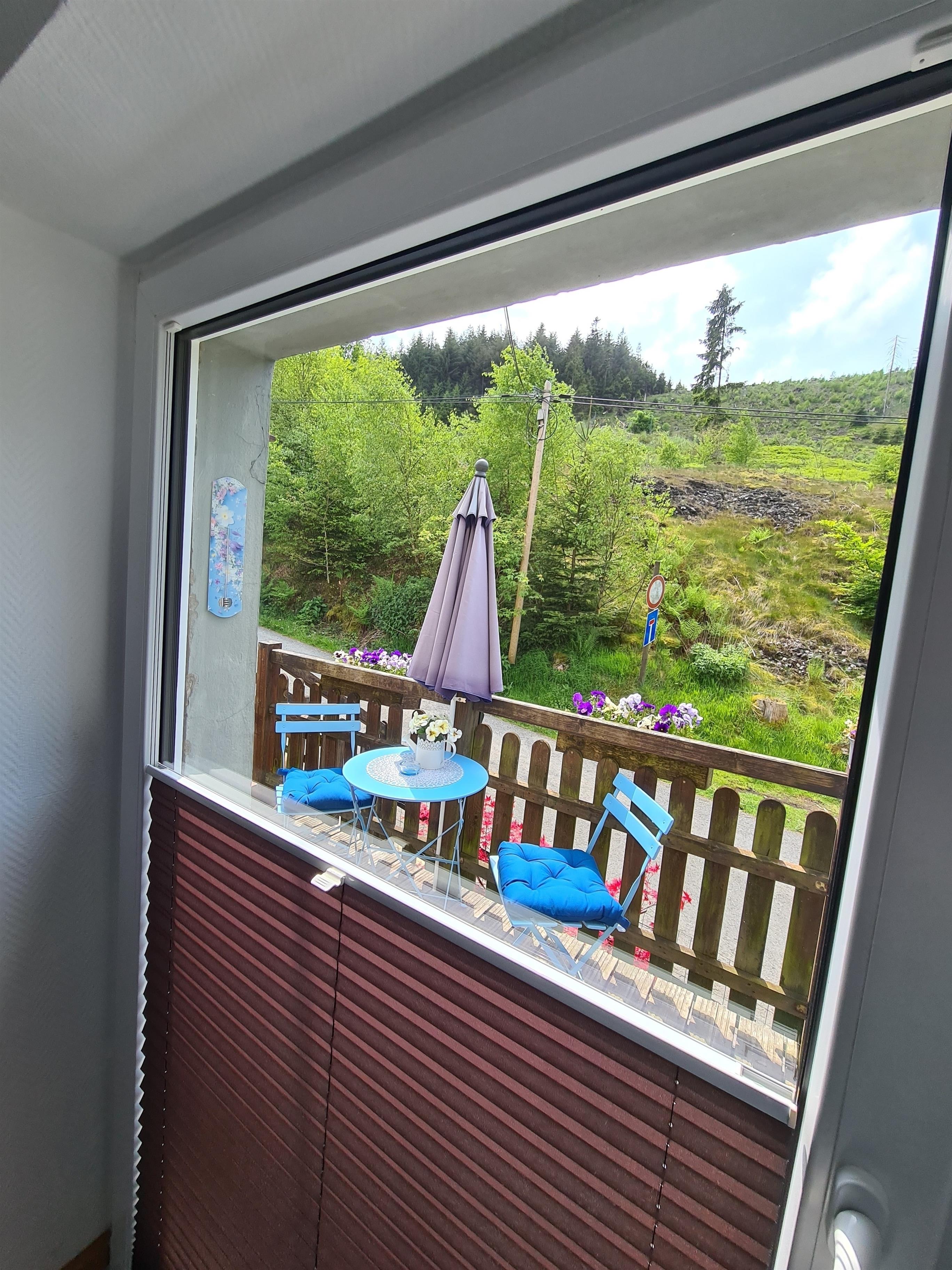 1x Balkon mit Balkonmöbeln