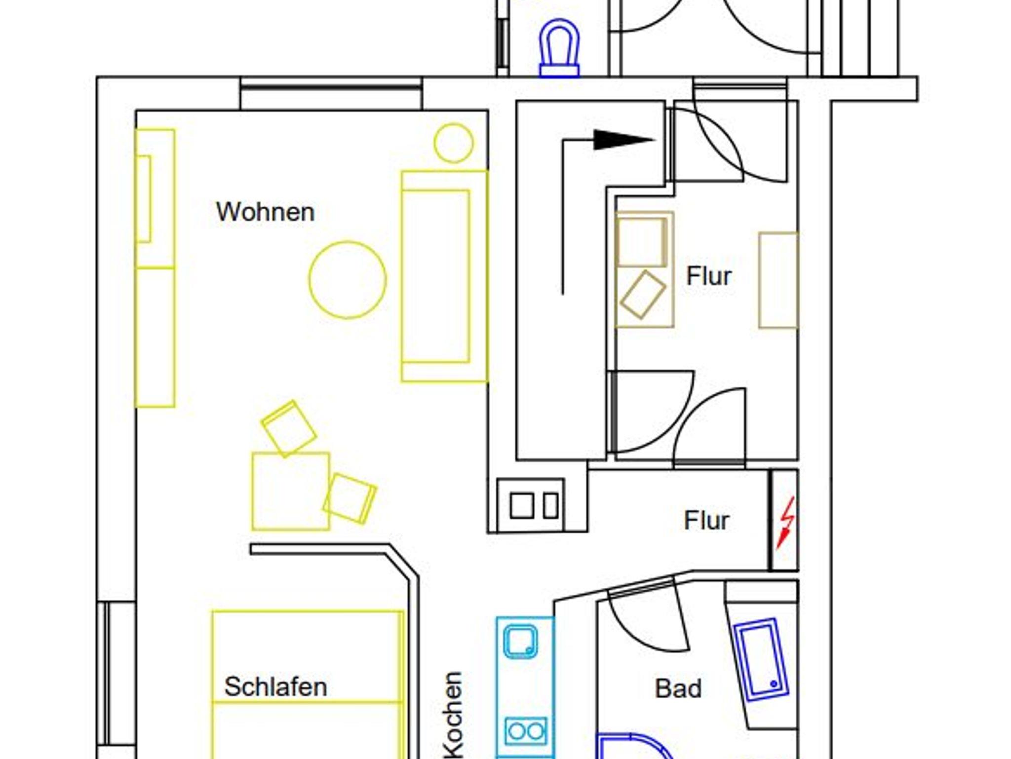 Das Appartement Parterre hat einen kombinierten Wohn-/Essbereich und ein optisch abgetrenntes Schlafzimmer. In der Küche stehen Wasserkocher, Kaffeepadmaschine, Toaster, Backofen und Induktionskochfeld bereit. Infrarotheizungen sorgen für eine angenehme Atmosphäre. Ein Bäcker mit Frühstücksmöglichkeit sowie ein Restaurant sind in 3 Minuten bequem erreichbar. Für unsere kleinen Gäste gibt es in ca. 50 m einen Spielplatz.