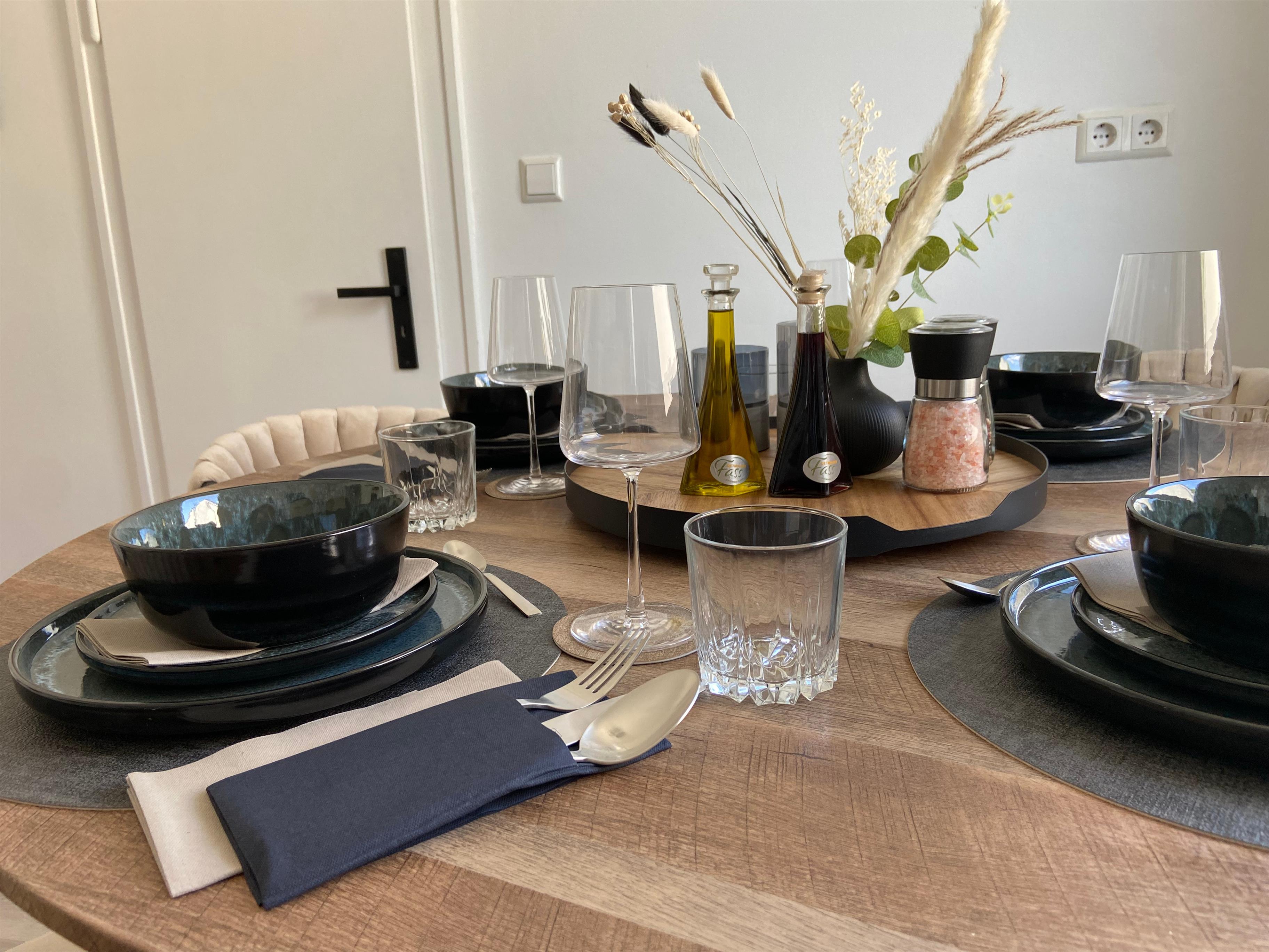 + Willkommens-Set (Kaffee, Tee, Salz, Zucker, Pfeffer, Öl, Balsamico, Spülmittel, Seife, Waschmaschinen & Spülmaschinen-Tabs)