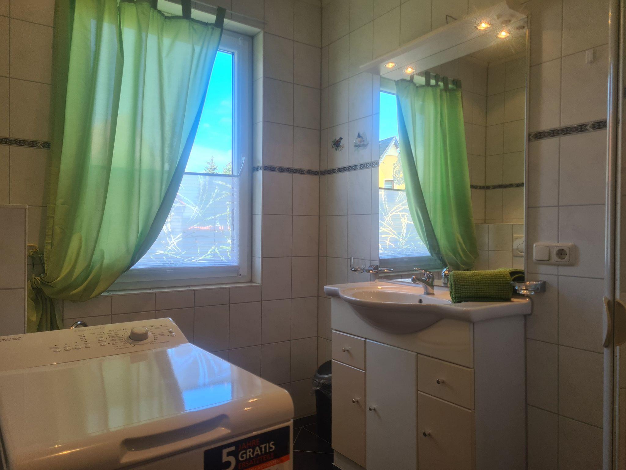 Erdgeschoss: Küche (Ceran-Herd, Backofen, Kaffeemaschine, Toaster, Wasserkocher, Kühl/Gefrierschrank). Ebenerdiges Duschbad/WC. Waschmaschine und Fußbodenheizung.