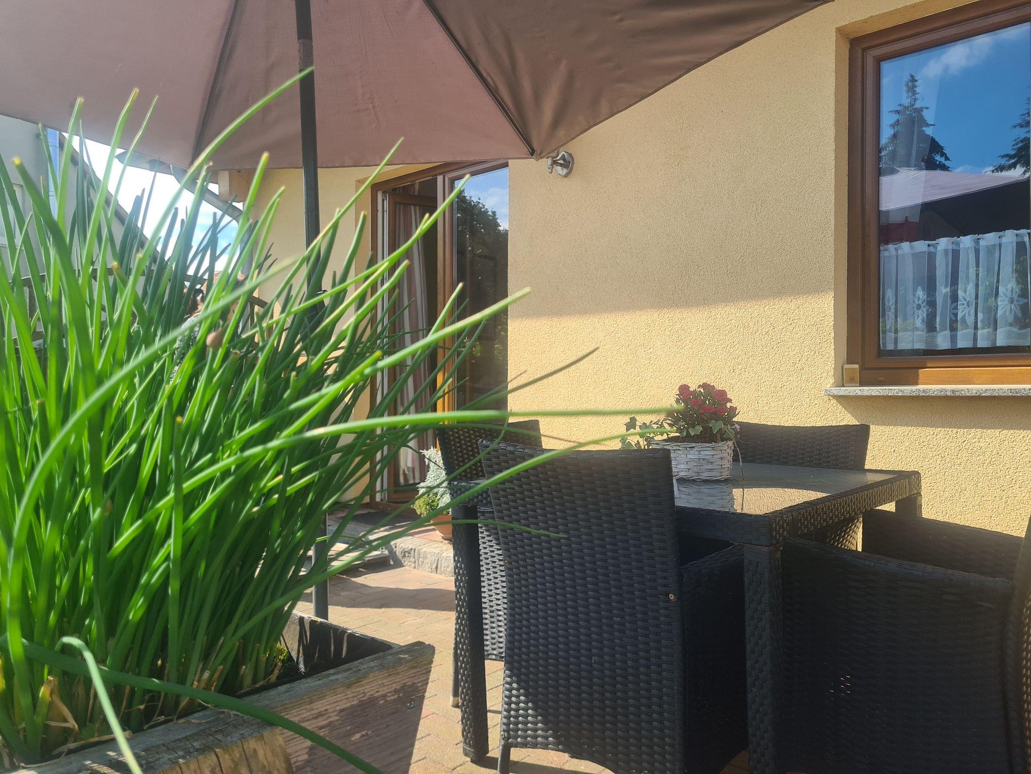 Sonnenterrasse, Garten und 1 PKW-Stellplatz direkt am Landhaus. Nichtraucherhaus. Raucherecke im Aussenbereich. Grill vorhanden. Ebenerdig außer eine Eingangsstufe am Haupteingang wie auch zur Terrasse.