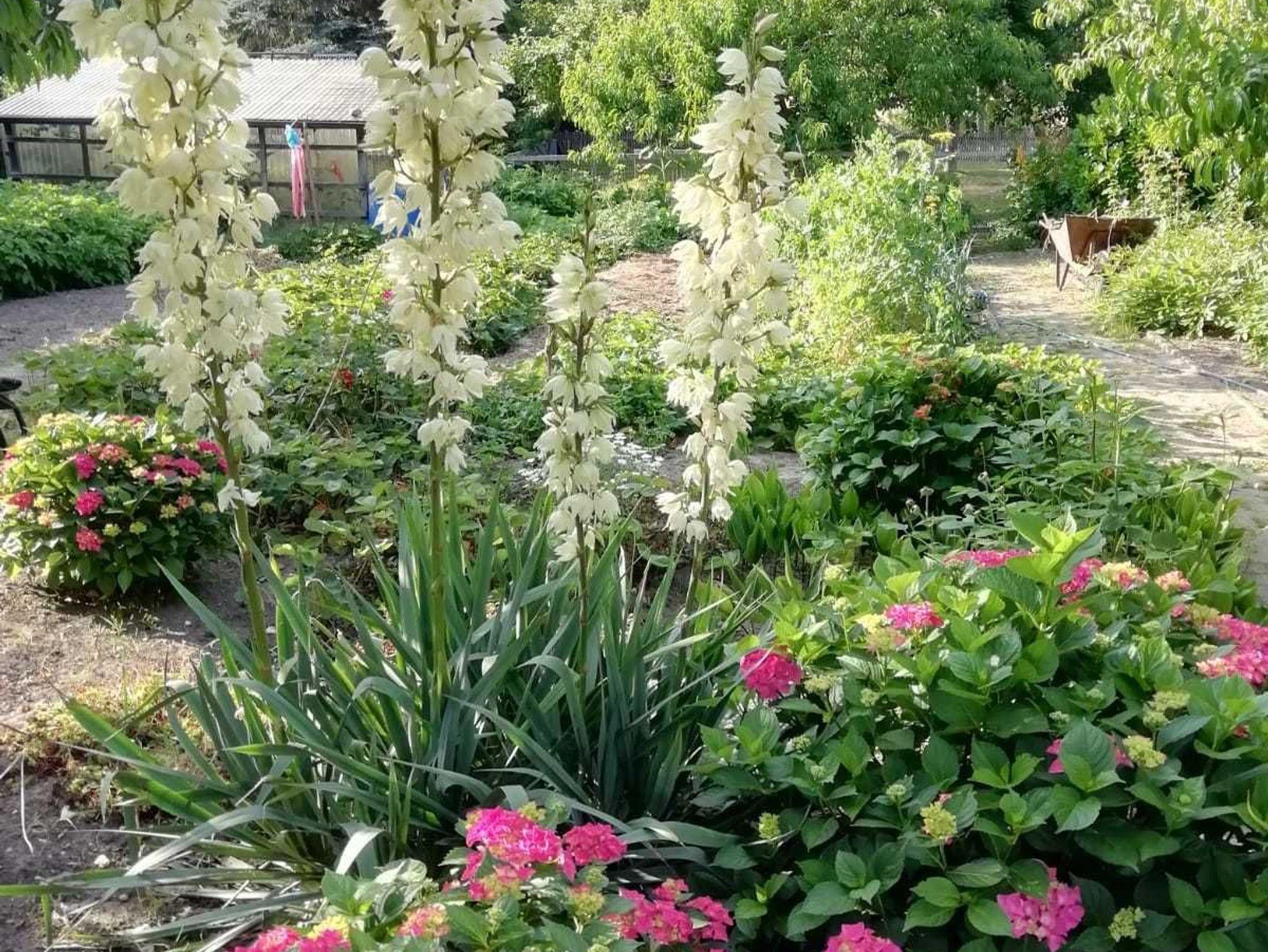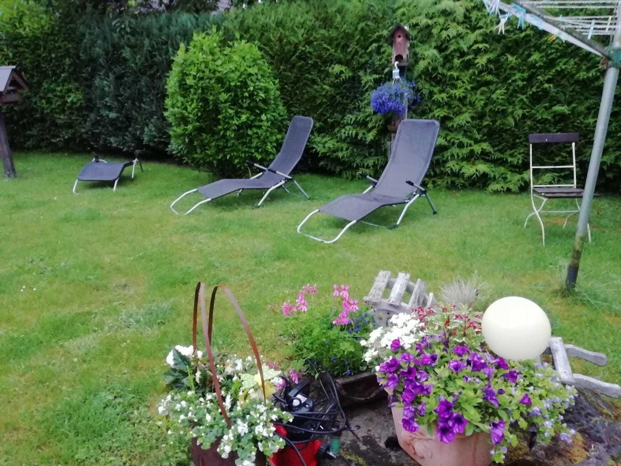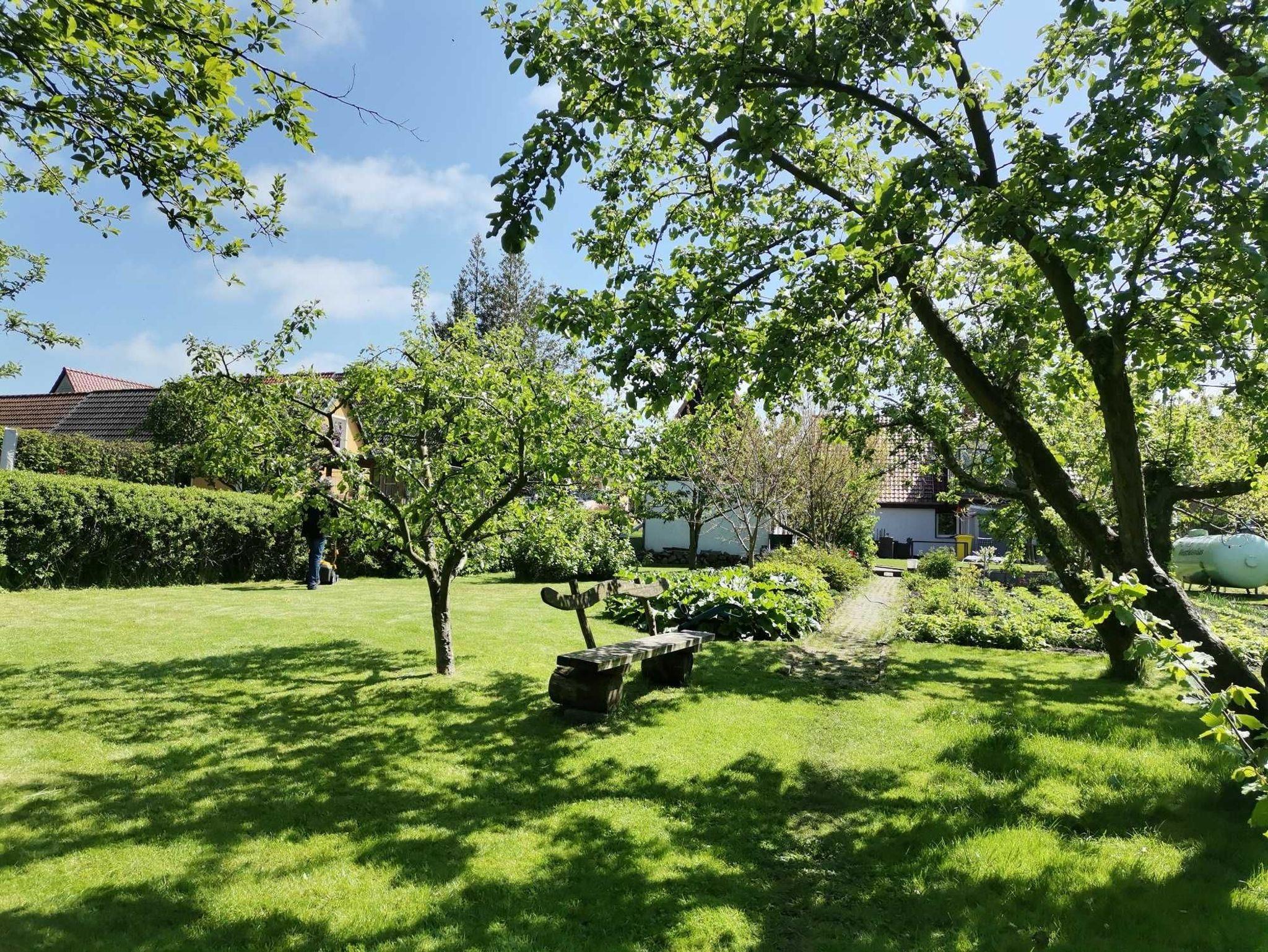 2.200m² Grundstück mit großem Garten. Terrasse, Lagerfeuerstelle, Liegewiese mit Gartenmöbeln und Sonnenliegen. PKW-Stellplatz. Fahrradunterstellmöglichkeit. Grill vorhanden.