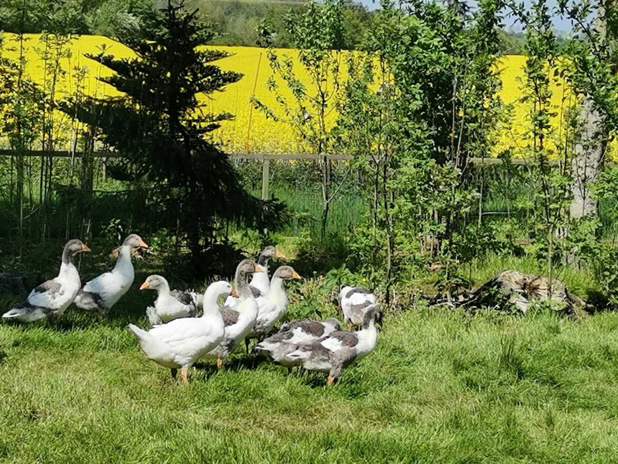 Der Kleinhund Lucy, Katzen, Enten und Gänse, Hühner, Kaninchen und Tauben sind auf dem Kleinbauernhof zuhause. Auf den Dorfkoppeln weiden Schafe, Kühe und Pferde. Im Ferienhaus sind keine Tiere erlaubt.