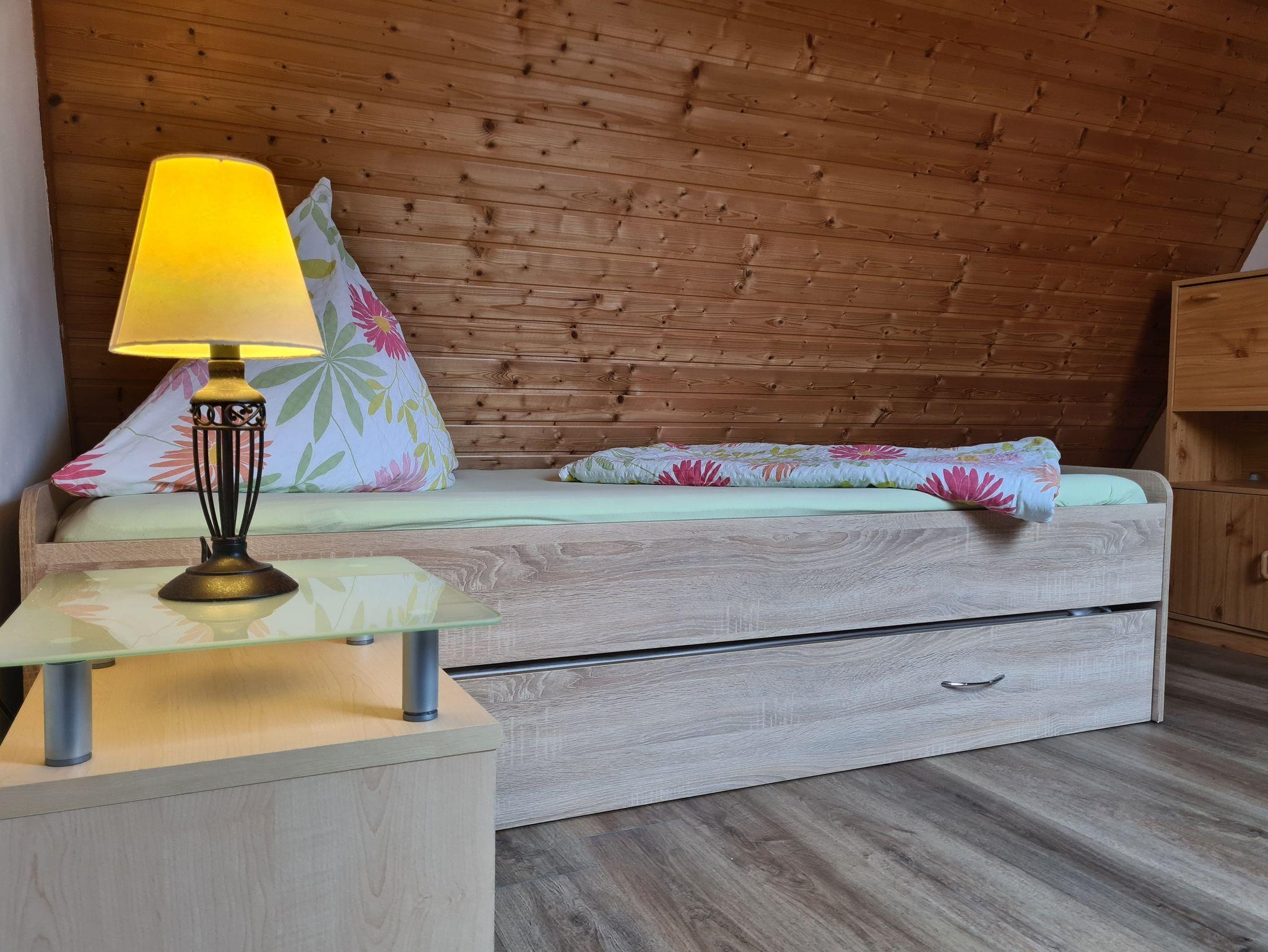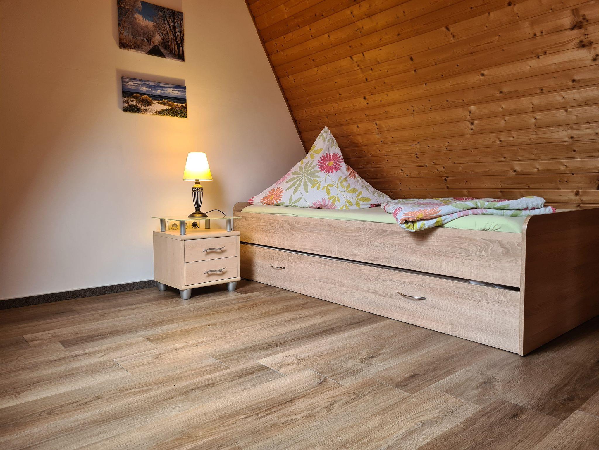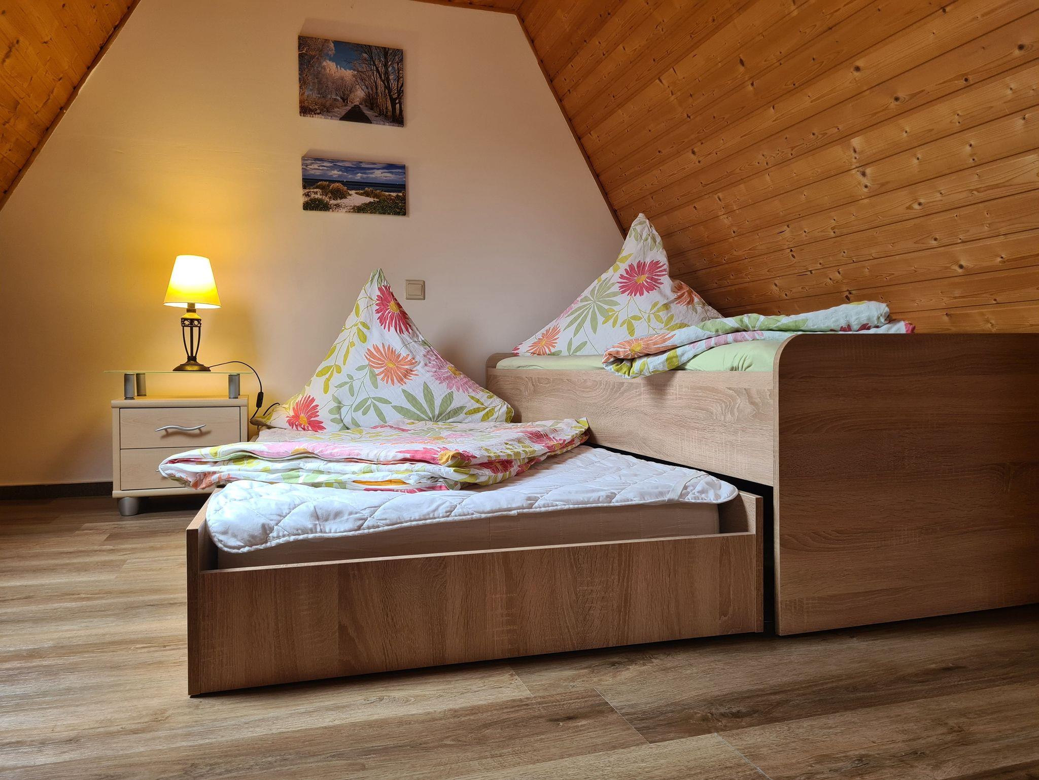 Dachgeschoß: 2 Schlafräume; Schlafraum 1: Doppelbett 1,80x2m). Schlafraum 2: 2 Einzelbetten. (je 0,90x2m). Treppenschutzgitter vorhanden.