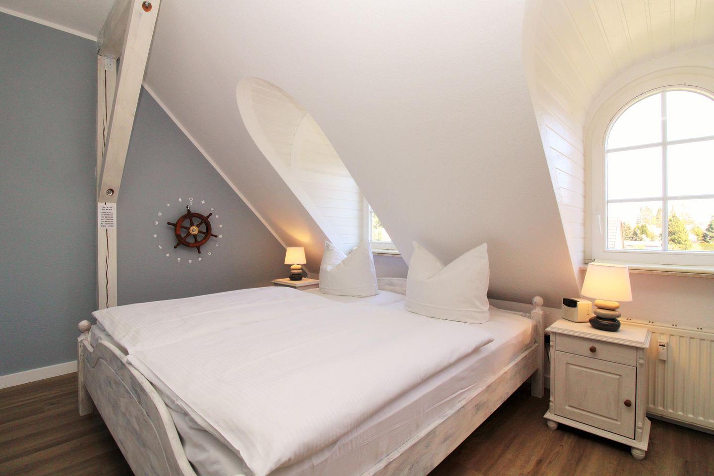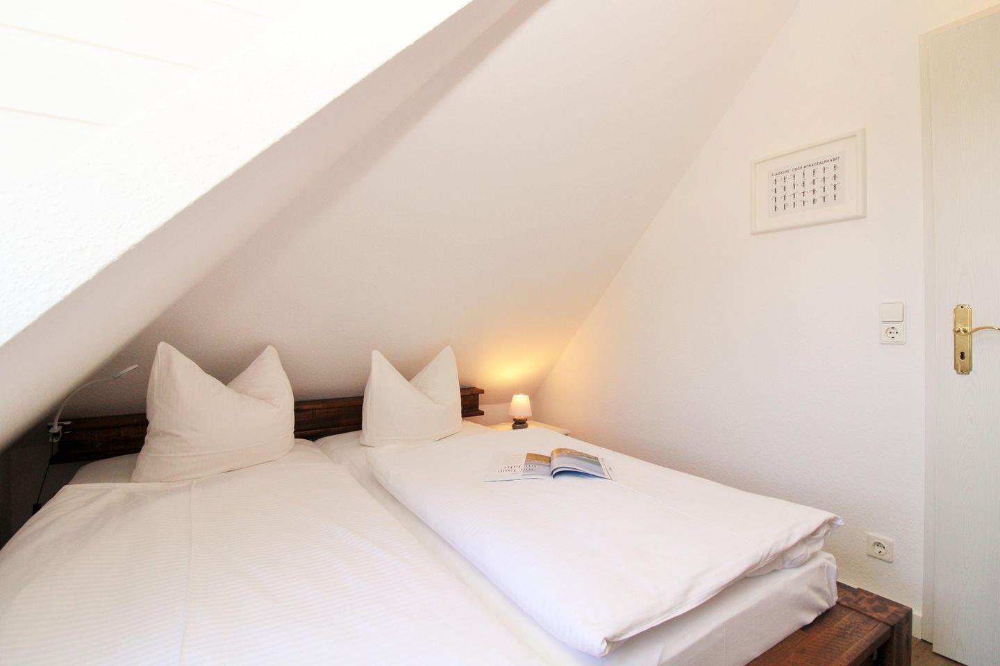 Das freundliche und gemütliche 1. Schlafzimmer ist mit einem bequemen Doppelbett mit Nachttischen sowie 2 geräumigen Kleiderschränken eingerichtet. Die zusätzlichen Verdunkelungsvorhänge an den Fenstern ermöglichen Ihnen eine ungestörte Nachtruhe. In einem vom Schlafzimmer abgehenden kleinen und offenen Raum steht eine zusätzliche Schlafcouch mit Nachttisch für eine weitere Person. Sofern hier niemand schläft, kann dieser Raum ggfs. auch als Abstellraum für Gepäck genutzt werden.