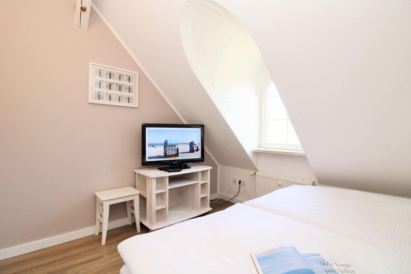 Das separate und zusätzliche 2. Schlafzimmer ist mit einem bequemen Doppelbett mit Nachttischen eingerichtet und verfügt über ein zusätzliches TV-Gerät. Selbstverständlich ermöglichen Ihnen auch hier die vorhandenen Verdunkelungsvorhänge eine ungestörte Nachtruhe.
