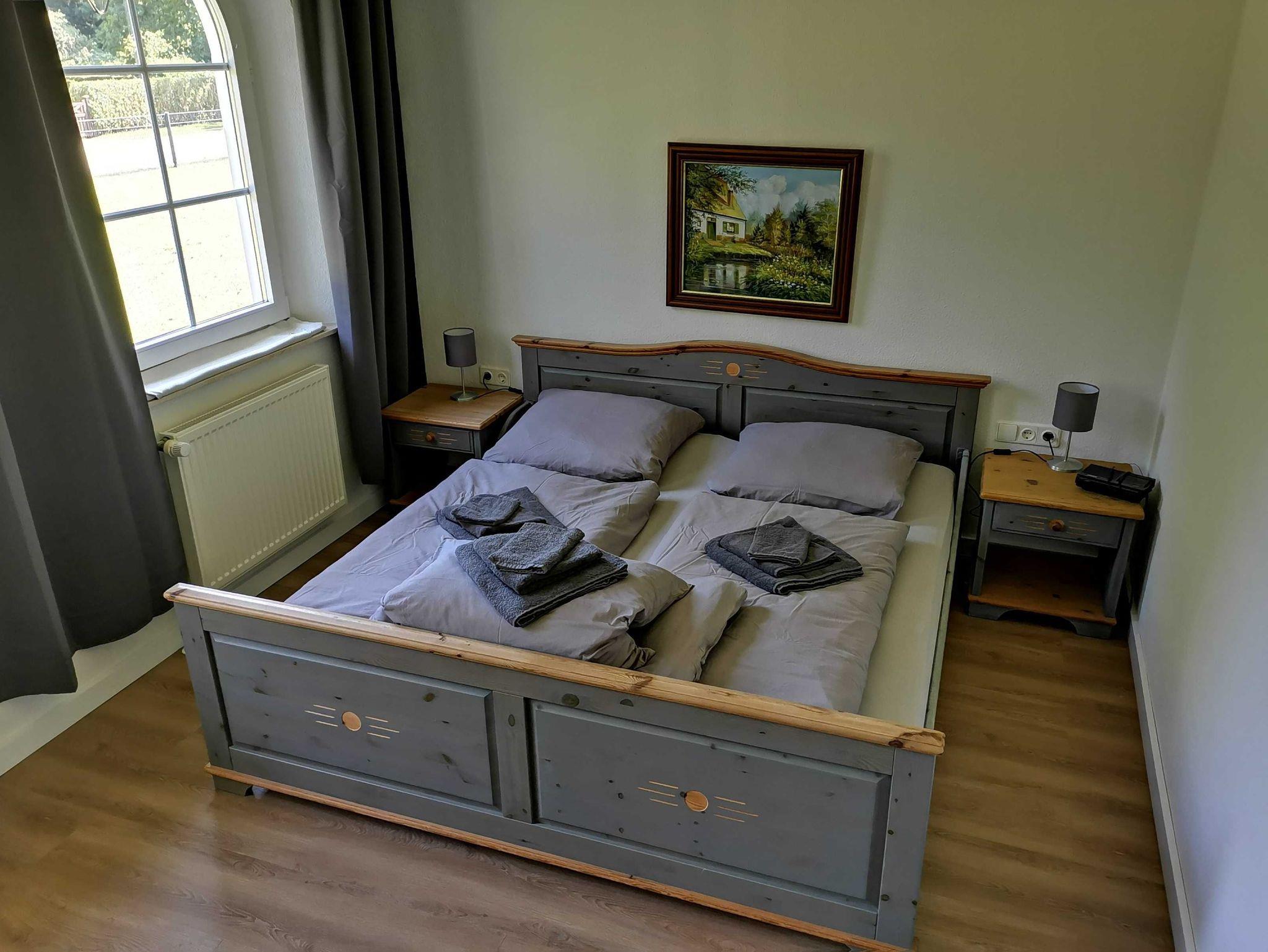 Das freundliche Schlafzimmer ist mit einem bequemen Doppelbett