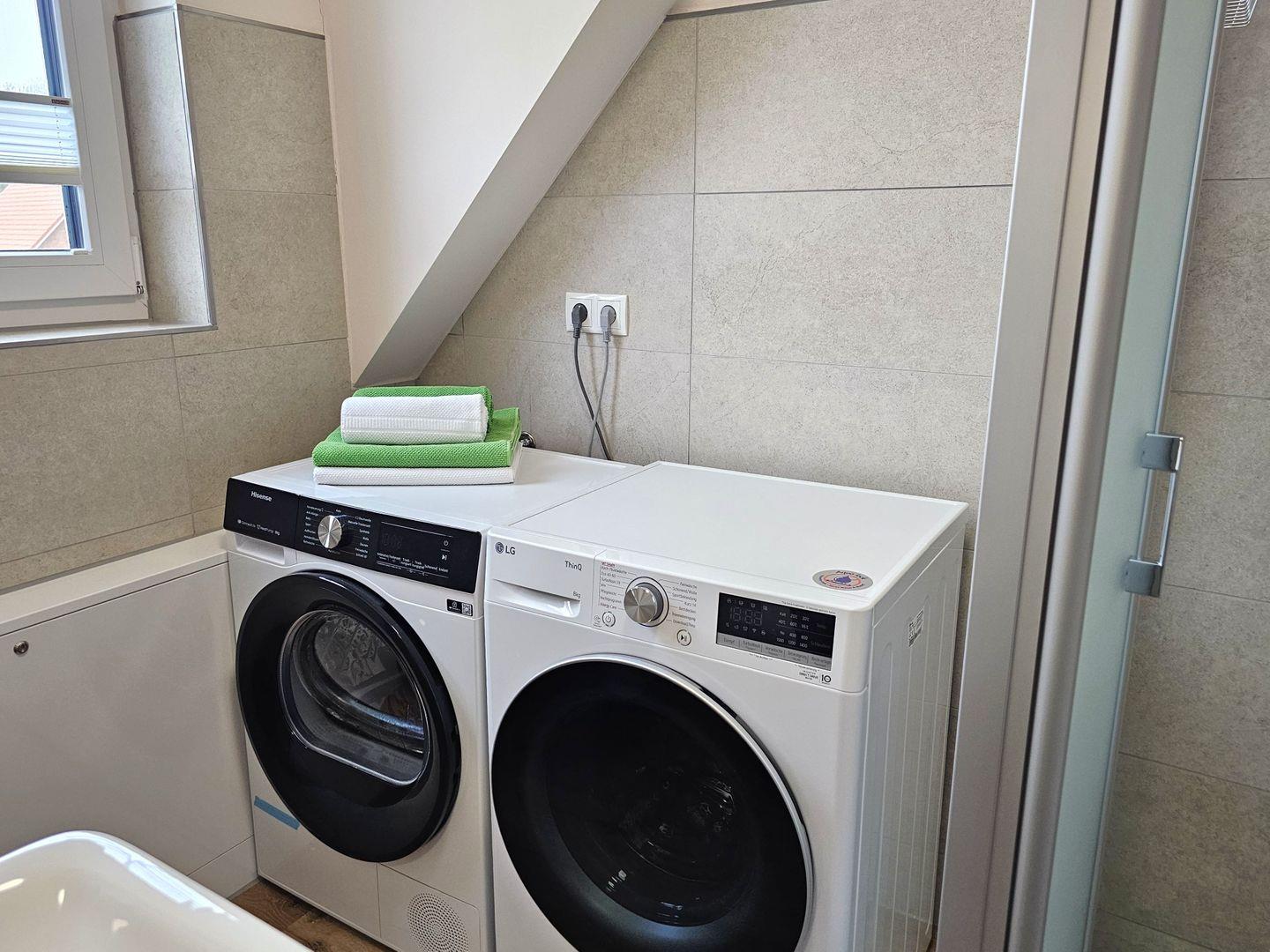 Die offene Küche, die nahtlos in den Wohnbereich integriert ist, vereint Funktionalität und Stil. Ausgestattet mit modernen Geräten wie einem Induktionsherd, Backofen, Kühlschrank, Gefrierfach, Geschirrspüler, Mikrowelle, doppelter Heißluftfriteuse und einer Kaffeemaschine, erfüllt sie alle Ihre Kochbedürfnisse. Außerdem finden Sie ausreichend Küchenutensilien und Geschirr, um Ihre Mahlzeiten mit der ganzen Gruppe zubereiten und genießen zu können.