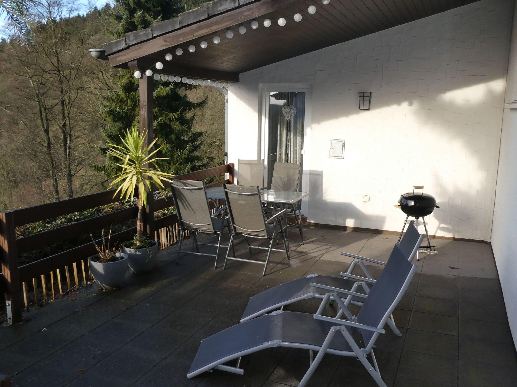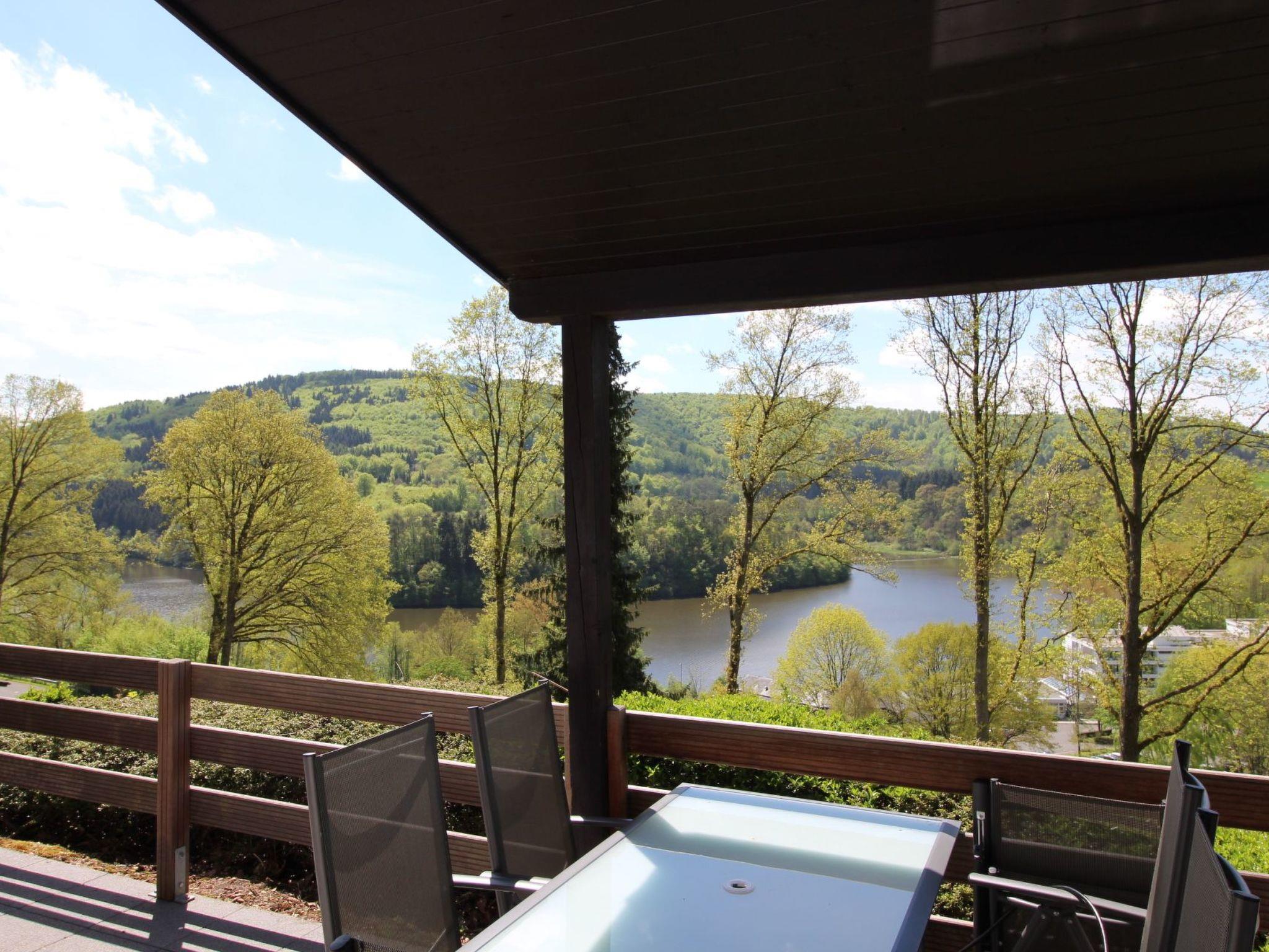 This detached holiday home is located on the edge of the forest within a small holiday home complex on the Bitburg reservoir in Biersdorf am See. The bungalow was renovated in 2022 and you reach the house via a staircase with 29 relatively shallow steps.