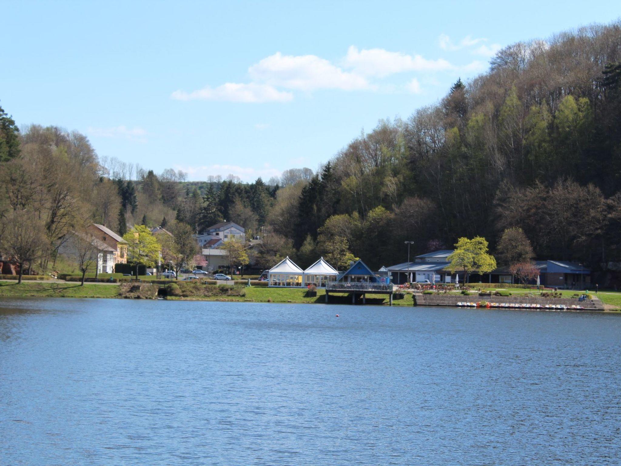 The Bitburg reservoir in Biersdorf am See is the tourist centre in the southern Eifel. It is a popular destination for both locals and holiday guests in the Bitburger Land holiday region. A wide range of leisure activities, whether active or relaxing, form a good basis for your holiday. The following leisure activities are available directly on the lake: pedal boat hire, hiking on signposted paths, lake promenade, cycling or playgrounds for the little ones. Water sports on the lake are not possible. On the lakeside terrace or in the pavilion at "Ferdis Bootshaus" you can enjoy a snack or a drink while savouring the fresh Eifel air. Golfers can indulge in their hobby at the nearby Bitburger Land golf resort in the Wißmannsdorf district (approx. five kilometres). A wide range of entertainment and sights (wildlife parks, museums, water nature trail, dinosaur park, Devil's Gorge and much more) are within easy reach. Trier, probably the oldest city in Germany, and neighbouring Luxembourg are also within easy reach and well worth a visit. Brochures are available in the holiday home.