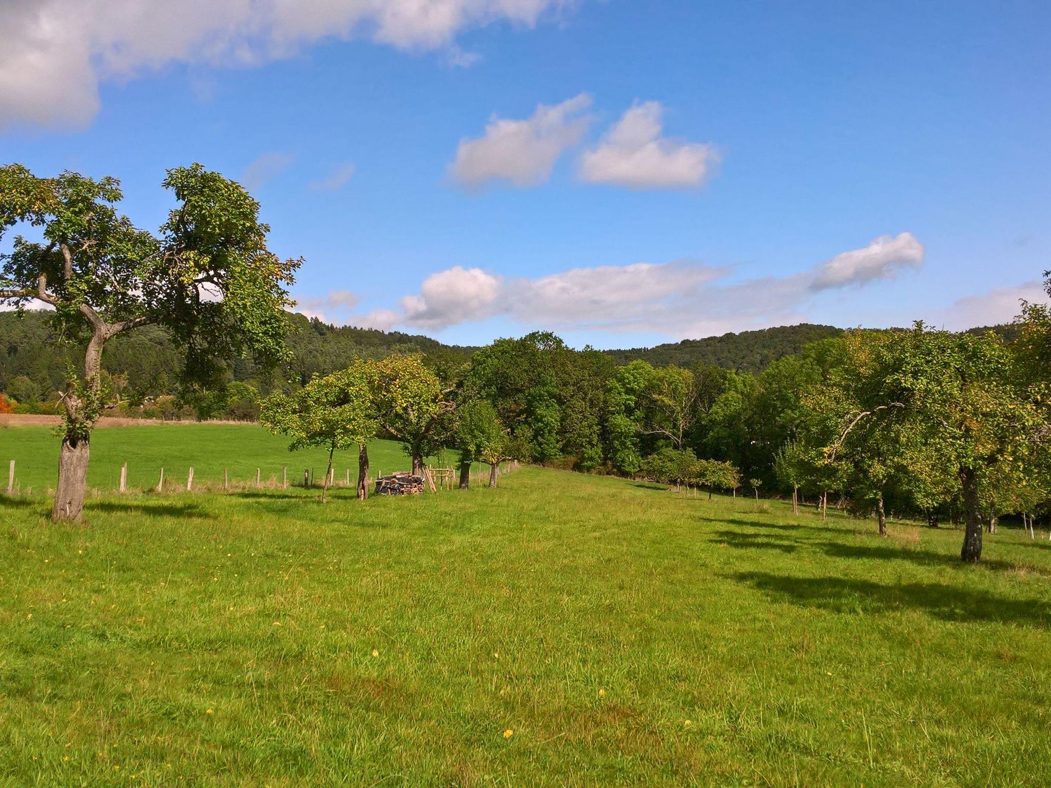 On the partially covered terrace facing south-west, you can enjoy balmy summer evenings with a fantastic view of the lake below. Two loungers and a garden set invite you to sunbathe and linger. A charcoal barbecue is also available here. You can buy wood for the fireplace from us or bring your own. Parking spaces are available free of charge within the holiday home complex. Pets are also very welcome.