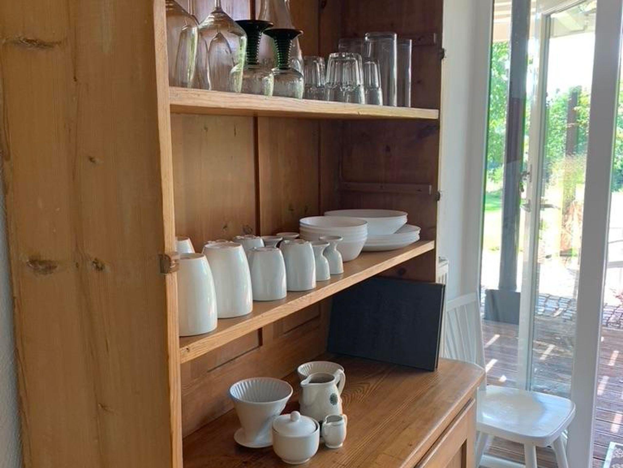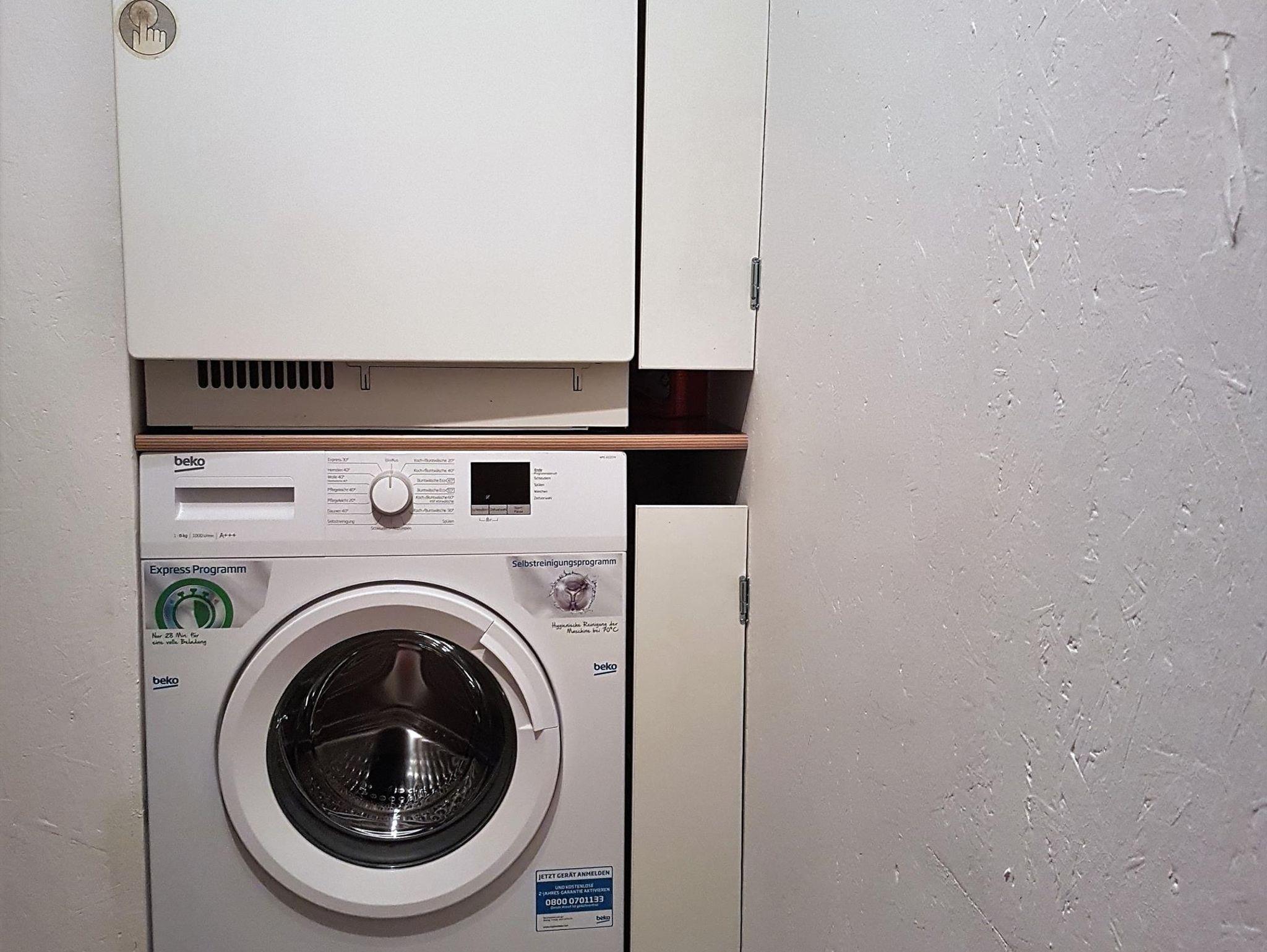 Herd/Backofen, Senseo-Kaffeemaschine (für Pads), Mikrowelle, Wasserkocher, Geschirrspülmaschine, Waschmaschine, Trockner, Fön