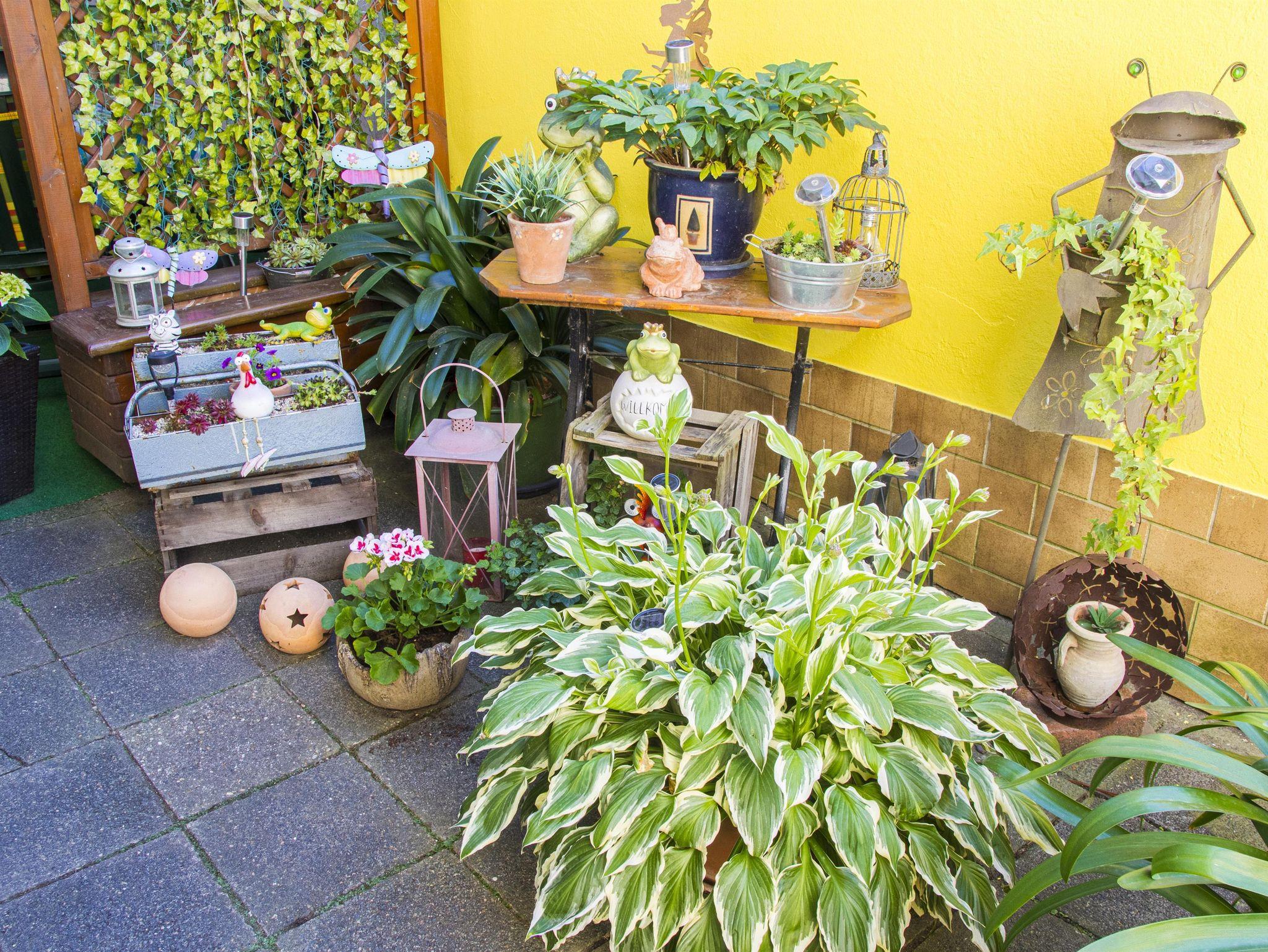 Im Hof finden unsere Gäste eine gemütliche Sitzecke mit vier Stühlen und Polsterauflagen vor.