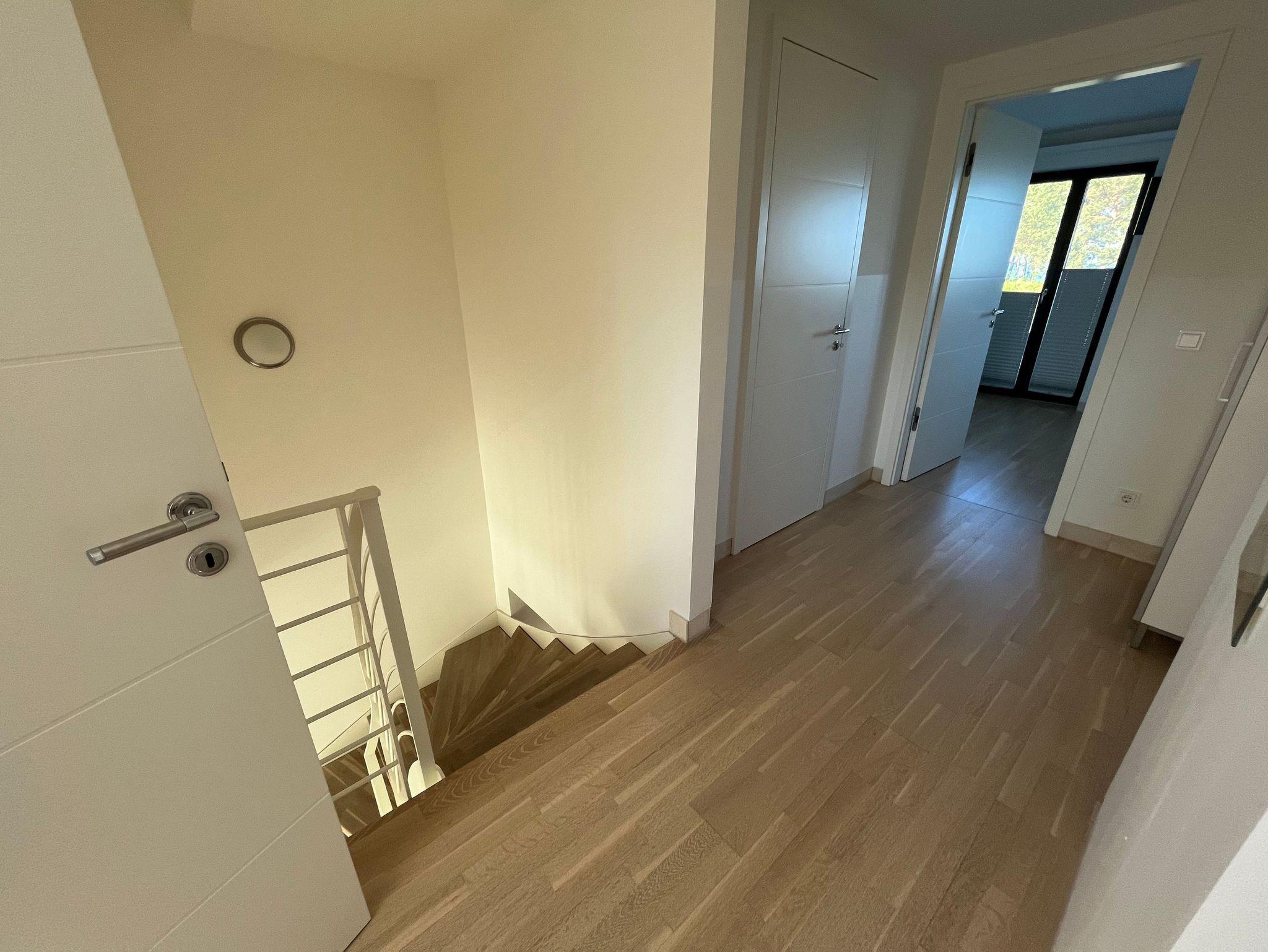 Sie besteht aus 1 großem Wohn- und Eßbereich mit integrierter Küche, 2 separaten Schlafzimmern, 1 großen Duschbad, sowie einem zweiten Bad mit WC, mit eigener Terrasse und eigenem Balkon mit Meerblick.