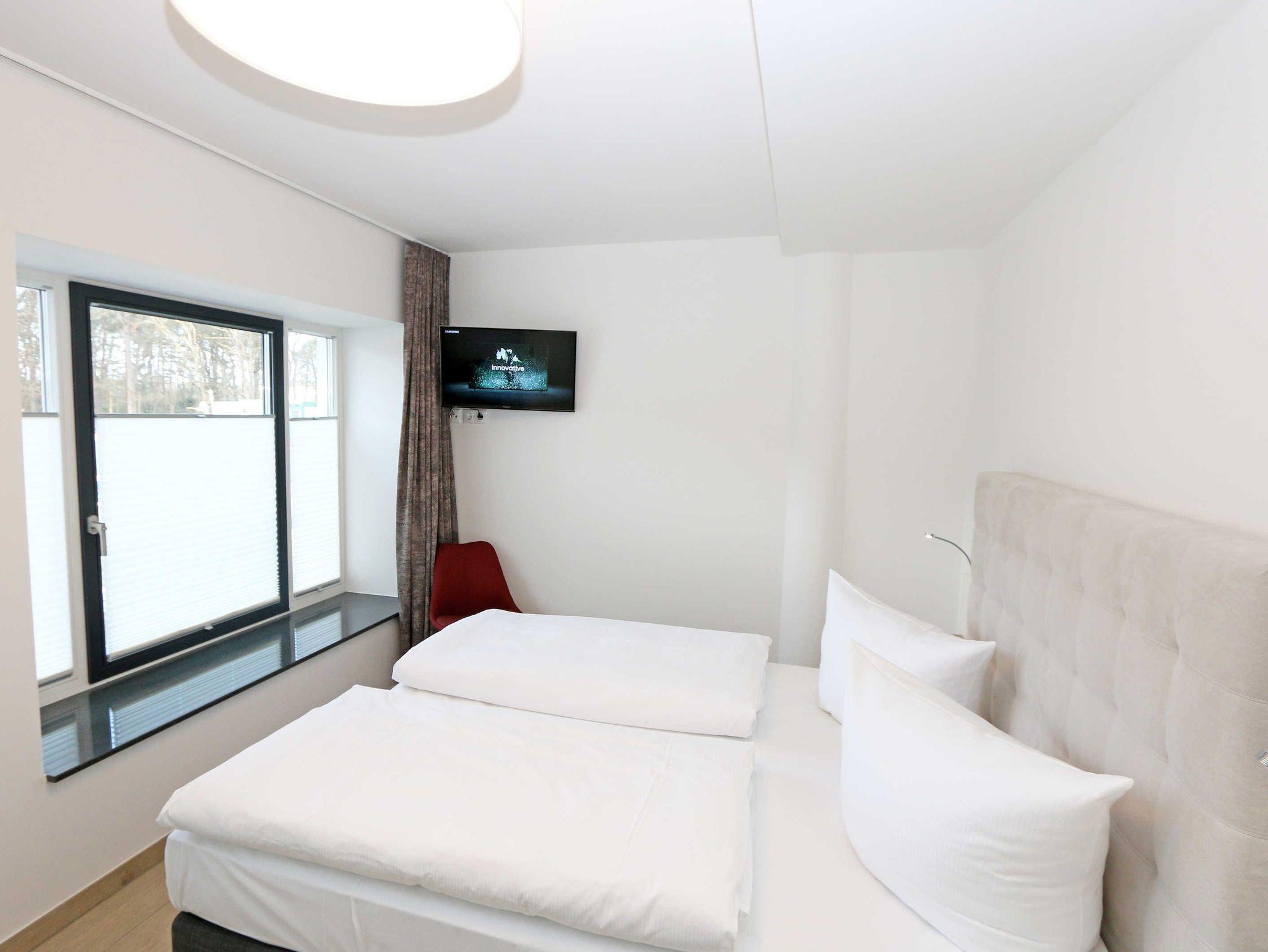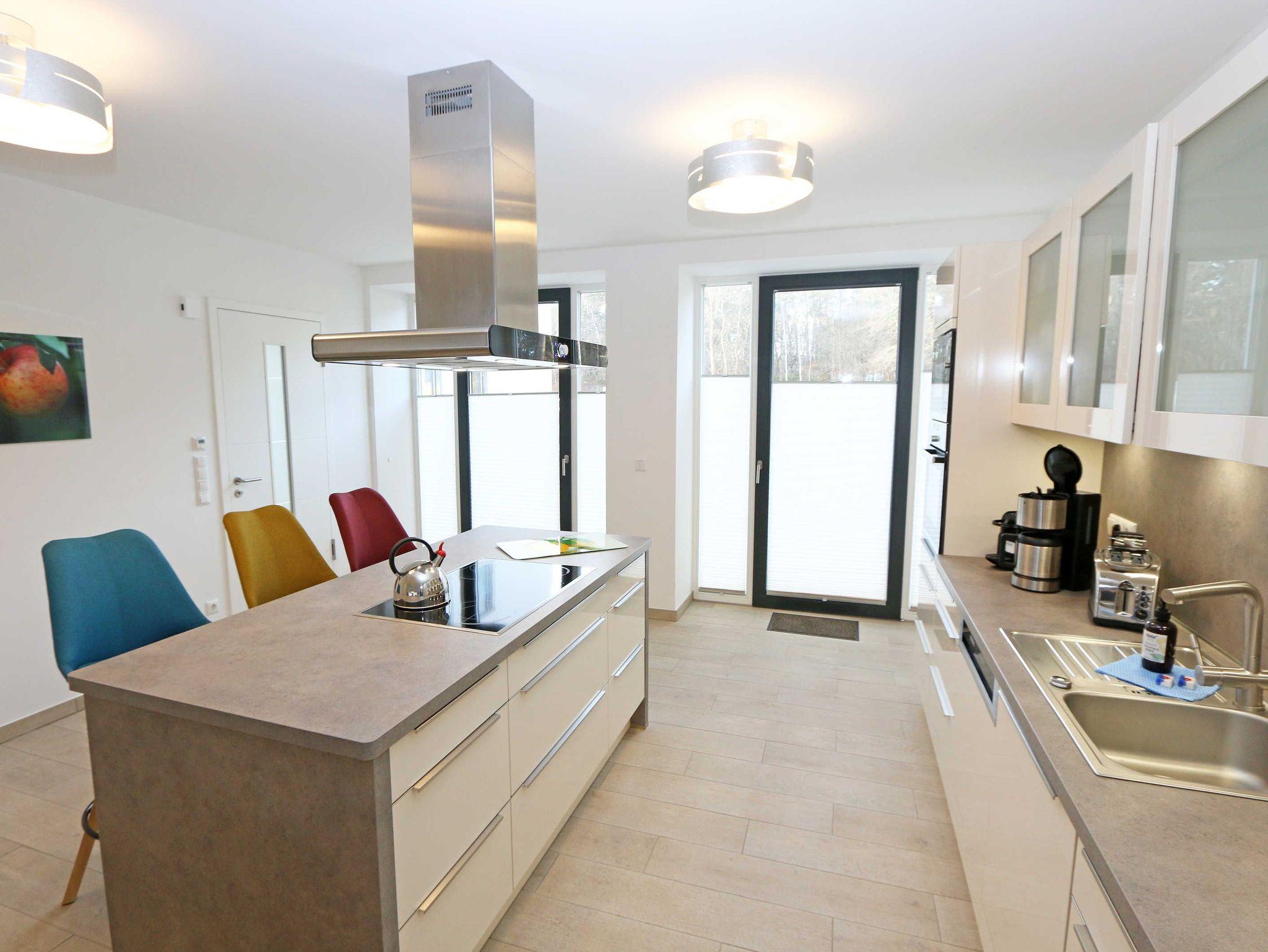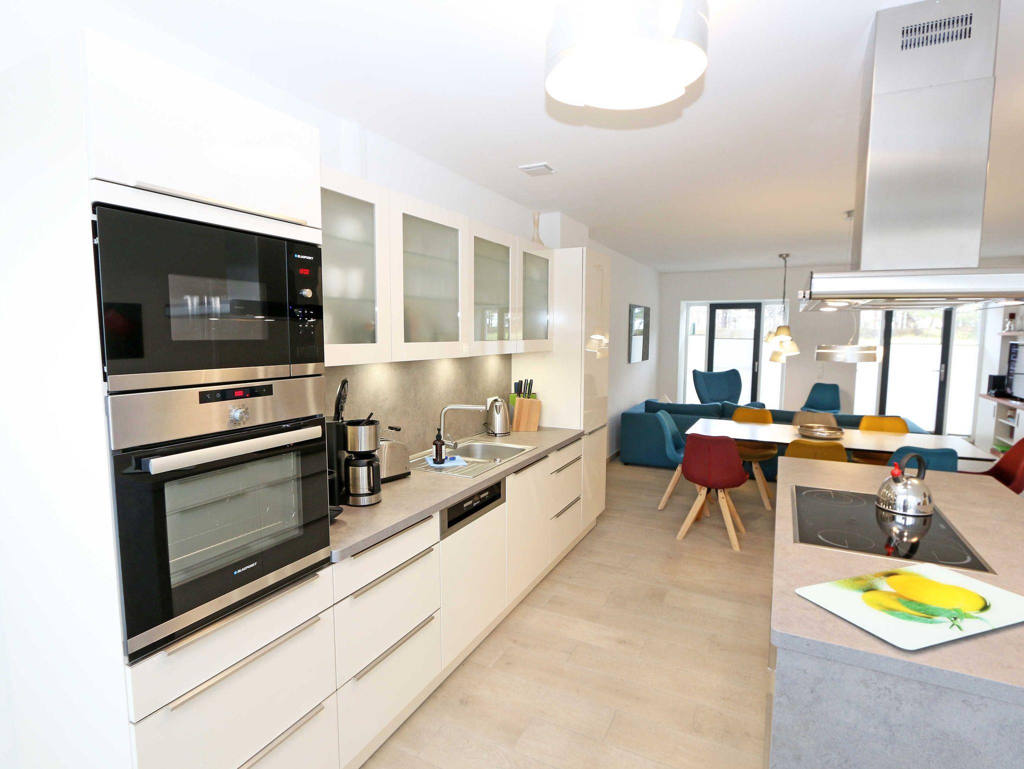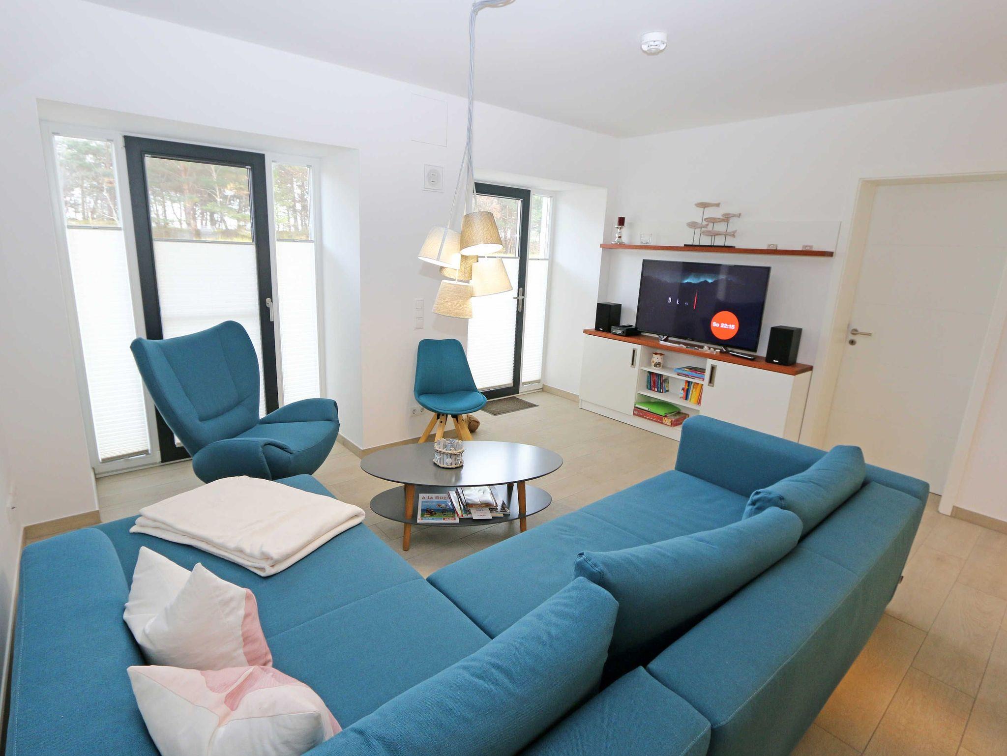 Die ca. 140 m² große 5-Raumferienwohnung (Nichtraucher), welche sich über 2 Etagen erstreckt, bietet Ihnen durch ihre erstklassige, stilsichere Ausstattung mit Balkon (Seeseite) und Terrassen im Erdgeschoss beste Voraussetzungen für einen unvergesslichen Urlaub. Dank einer gelungenen Raumaufteilung bietet die Wohnung Platz für max. 7 Erwachsene und 2 Kleinkinder bis 3 Jahre im Kinderreisebett. Im großzügigen Wohn-/Essbereich können Sie durch die komfortable Eck-Couch mit Couchtisch, Sideboard und großem Essplatz gemütliche Tage verbringen. Vier Smart-TVs und eine Mini-Stereo-Anlage mit Bluetooth und USB-Anschluss sowie das in der Wohnung kostenlos zur Verfügung gestellte W-LAN sorgen für Ihre Unterhaltung. Vom Wohnbereich gelangen Sie direkt auf Ihre 2 Terrassen, welche einmal zur Seeseite und zur Landseite ausgerichtet sind. Die moderne Küchenzeile, welche sich dem Wohnbereich anpasst, bietet Ihnen ein 4-Zonen-Cerankochfeld, Backofen, Spülmaschine, Kühlschrank mit separaten Gefrierfach, Kaffeemaschine, Nespresso Kaffeemaschine, Toaster, Wasserkocher, Mixer sowie diverse Küchenutensilien und lädt so zu gemütlichen Kochabenden ein. Drei Schlafzimmer sind mit einem Doppelbett (1x 1,60m x 2,00m, 1x 0,90m x 2,00m ausziehbar auf 1,80m und 1x 1,80m x 2,00m), Nachttischablagen mit Beleuchtung und USB-Anschlüssen sowie Kleiderschränken für Ihre Urlaubsgarderobe ausgestattet. Das vierte Schlafzimmer verfügt über ein Einzelbett (0,90m x 2,00m), Nachttischablage mit Beleuchtung und USB Anschlüssen sowie einen Kleiderschrank. Bei einem der 4 Schlafzimmer erwartet Sie zusätzlich ein Zugang zum Balkon, wo Sie einen einmaligen Blick auf die Ostsee erleben werden. Verdunklungsmöglichkeiten durch Vorhänge sowie Plissees und Insektenschutz erlauben einen geruhsamen Schlaf in allen 4 Schlafzimmern. Drei Schlafzimmer verfügen über je ein Smart-TV. Alle 3 Bäder sind jeweils mit einem WC, einer ebenerdigen Dusche, einen Kosmetikspiegel, einen Fön, einen Handtuchtrockner sowie einem Waschplatz mit großzügigen Spiegeln und Ablageflächen eingerichtet. Ein Badezimmer lockt zusätzlich mit einer Sauna zur Entspannung ein. Ein weiteres Bad wird durch ein Bidet und einer Badewanne abgerundet. Im wohnungsinternen Abstellraum finden Sie auch einen Staubsauger, einen Wäscheständer sowie ein Bügelbrett mit Bügeleisen. In einem separaten Abstellraum im Haus Granitz befindet sich zusätzlich eine Waschmaschine, welche sich für Whg 53 und 03 inklusive ist. Diese befindet sich in der 3 Etage des Hauses und kann bequem mit dem Fahrstuhl erreicht werden. Haustiere, ein kleinerer Hund ist gegen eine Gebühr, gestattet. Ein Stellplatz für Ihren PKW ist auf den gegenüberliegenden Parkplätzen für Sie reserviert. Ihre mitgebrachten Fahrräder können Sie in einem Gemeinschaftsabstellraum unterstellen. Die Erstausstattung eines Wäschepaketes (komplette Bettwäsche, 1 Duschhandtuch, 1 kleines Handtuch) können Sie bis 14 Tage vor Anreise gegen einen Aufpreis dazu buchen oder durch eigene ergänzen. Ab 2 gebuchten Paketen erhalten Sie einmalig 1 Geschirrhandtuch und 1 Duschvorleger hinzu.