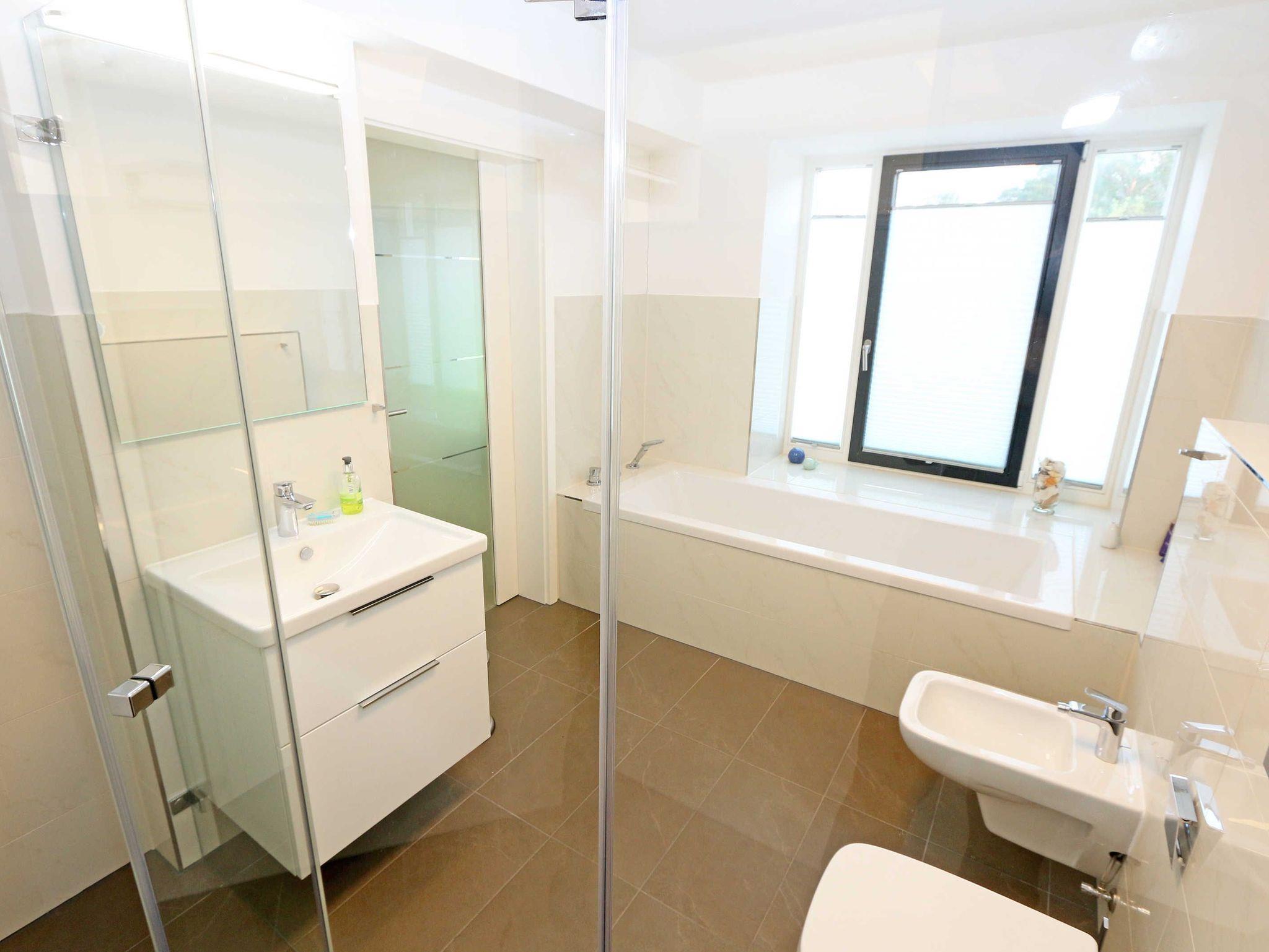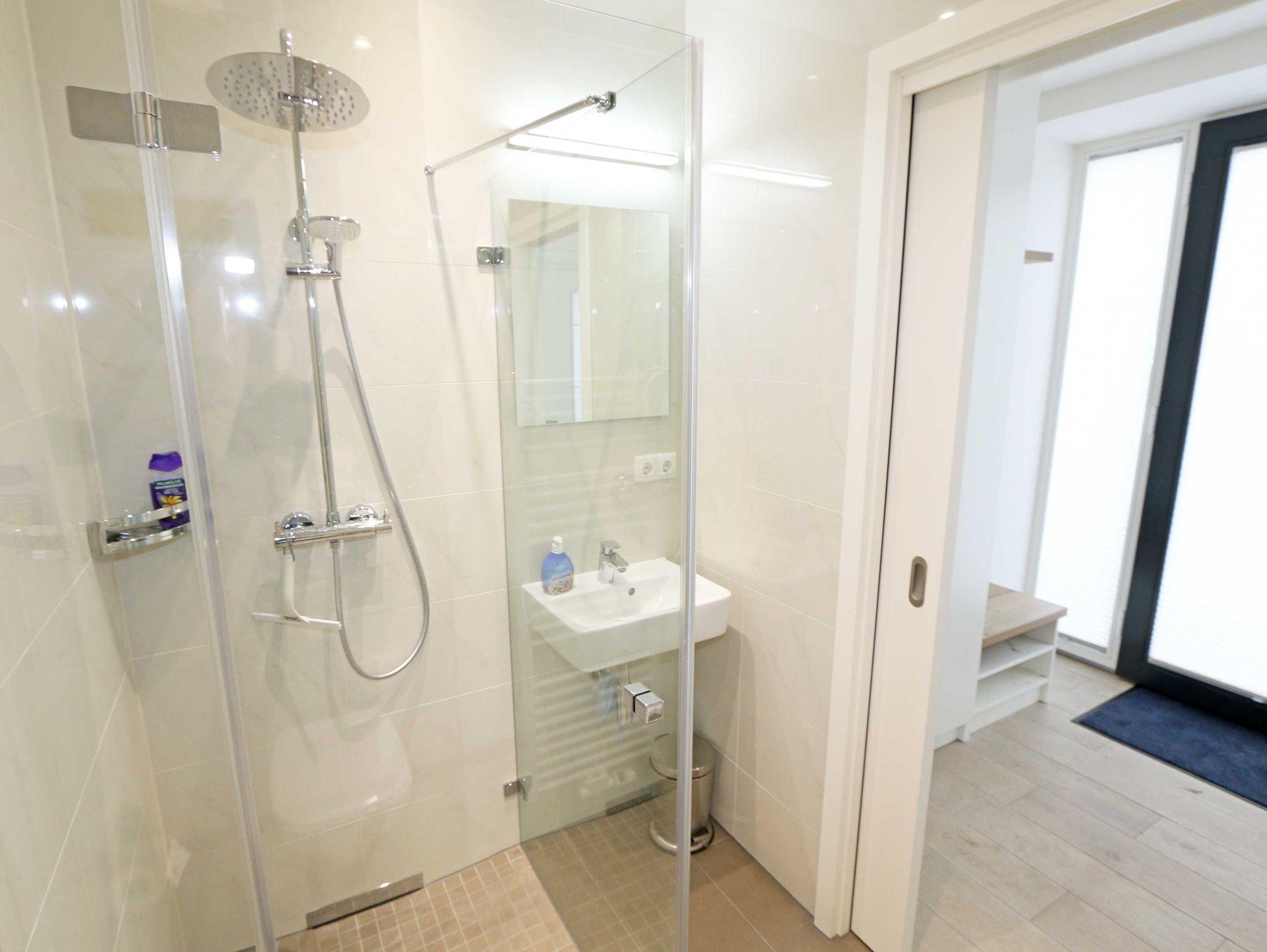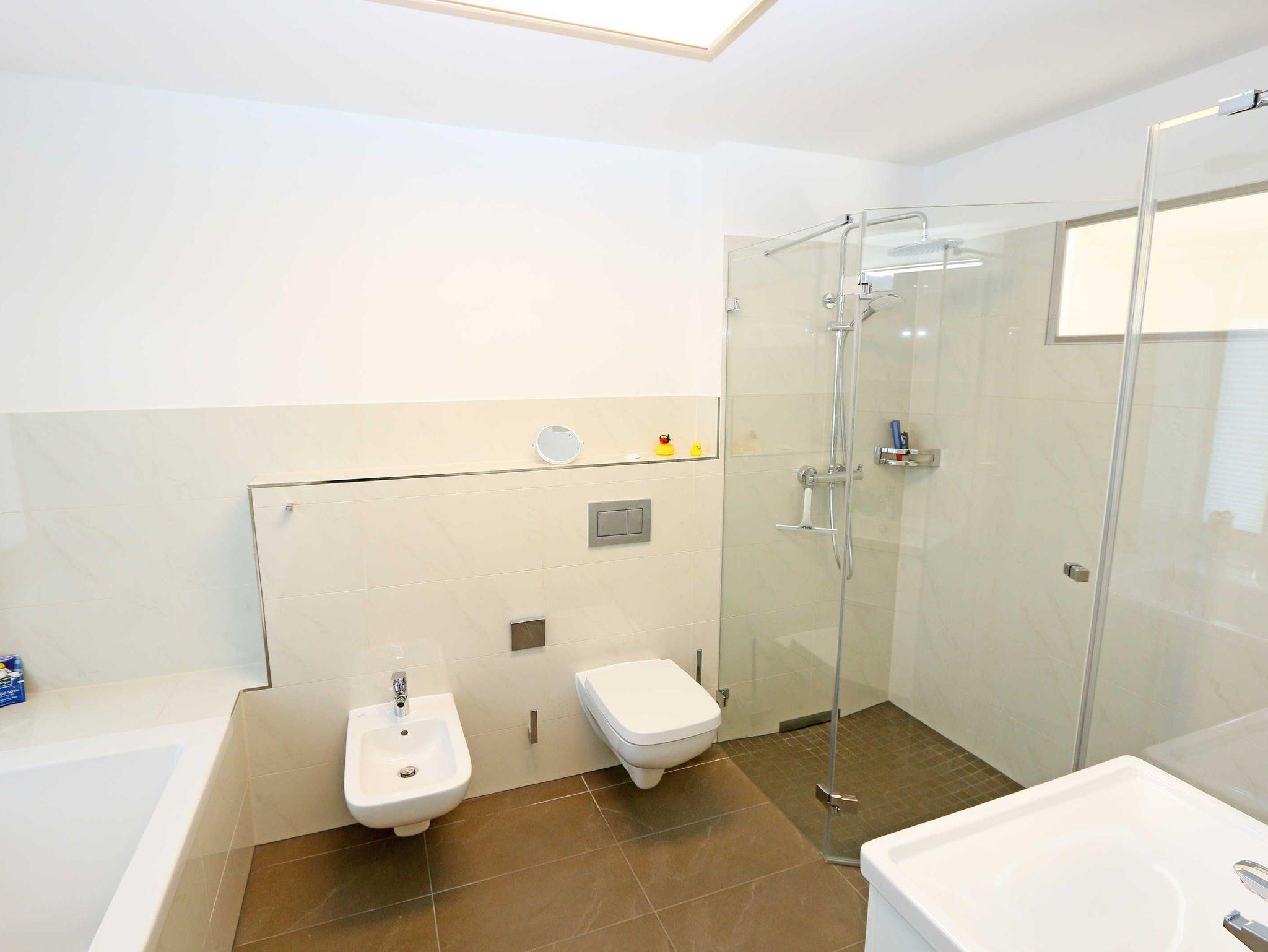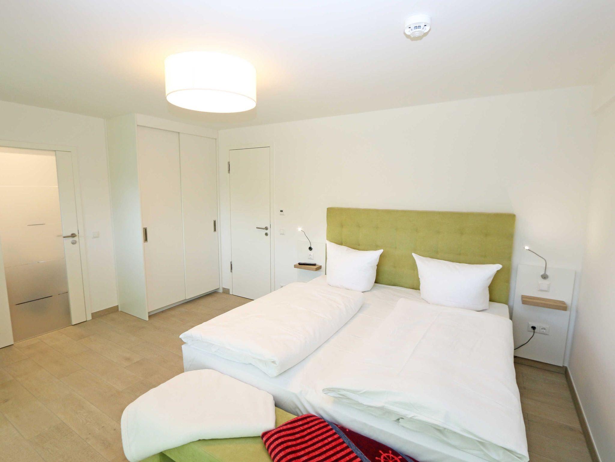 Die ca. 140 m² große 5-Raumferienwohnung (Nichtraucher), welche sich über 2 Etagen erstreckt, bietet Ihnen durch ihre erstklassige, stilsichere Ausstattung mit Balkon (Seeseite) und Terrassen im Erdgeschoss beste Voraussetzungen für einen unvergesslichen Urlaub. Dank einer gelungenen Raumaufteilung bietet die Wohnung Platz für max. 7 Erwachsene und 2 Kleinkinder bis 3 Jahre im Kinderreisebett. Im großzügigen Wohn-/Essbereich können Sie durch die komfortable Eck-Couch mit Couchtisch, Sideboard und großem Essplatz gemütliche Tage verbringen. Vier Smart-TVs und eine Mini-Stereo-Anlage mit Bluetooth und USB-Anschluss sowie das in der Wohnung kostenlos zur Verfügung gestellte W-LAN sorgen für Ihre Unterhaltung. Vom Wohnbereich gelangen Sie direkt auf Ihre 2 Terrassen, welche einmal zur Seeseite und zur Landseite ausgerichtet sind. Die moderne Küchenzeile, welche sich dem Wohnbereich anpasst, bietet Ihnen ein 4-Zonen-Cerankochfeld, Backofen, Spülmaschine, Kühlschrank mit separaten Gefrierfach, Kaffeemaschine, Nespresso Kaffeemaschine, Toaster, Wasserkocher, Mixer sowie diverse Küchenutensilien und lädt so zu gemütlichen Kochabenden ein. Drei Schlafzimmer sind mit einem Doppelbett (1x 1,60m x 2,00m, 1x 0,90m x 2,00m ausziehbar auf 1,80m und 1x 1,80m x 2,00m), Nachttischablagen mit Beleuchtung und USB-Anschlüssen sowie Kleiderschränken für Ihre Urlaubsgarderobe ausgestattet. Das vierte Schlafzimmer verfügt über ein Einzelbett (0,90m x 2,00m), Nachttischablage mit Beleuchtung und USB Anschlüssen sowie einen Kleiderschrank. Bei einem der 4 Schlafzimmer erwartet Sie zusätzlich ein Zugang zum Balkon, wo Sie einen einmaligen Blick auf die Ostsee erleben werden. Verdunklungsmöglichkeiten durch Vorhänge sowie Plissees und Insektenschutz erlauben einen geruhsamen Schlaf in allen 4 Schlafzimmern. Drei Schlafzimmer verfügen über je ein Smart-TV. Alle 3 Bäder sind jeweils mit einem WC, einer ebenerdigen Dusche, einen Kosmetikspiegel, einen Fön, einen Handtuchtrockner sowie einem Waschplatz mit großzügigen Spiegeln und Ablageflächen eingerichtet. Ein Badezimmer lockt zusätzlich mit einer Sauna zur Entspannung ein. Ein weiteres Bad wird durch ein Bidet und einer Badewanne abgerundet. Im wohnungsinternen Abstellraum finden Sie auch einen Staubsauger, einen Wäscheständer sowie ein Bügelbrett mit Bügeleisen. In einem separaten Abstellraum im Haus Granitz befindet sich zusätzlich eine Waschmaschine, welche sich für Whg 53 und 03 inklusive ist. Diese befindet sich in der 3 Etage des Hauses und kann bequem mit dem Fahrstuhl erreicht werden. Haustiere, ein kleinerer Hund ist gegen eine Gebühr, gestattet. Ein Stellplatz für Ihren PKW ist auf den gegenüberliegenden Parkplätzen für Sie reserviert. Ihre mitgebrachten Fahrräder können Sie in einem Gemeinschaftsabstellraum unterstellen. Die Erstausstattung eines Wäschepaketes (komplette Bettwäsche, 1 Duschhandtuch, 1 kleines Handtuch) können Sie bis 14 Tage vor Anreise gegen einen Aufpreis dazu buchen oder durch eigene ergänzen. Ab 2 gebuchten Paketen erhalten Sie einmalig 1 Geschirrhandtuch und 1 Duschvorleger hinzu.