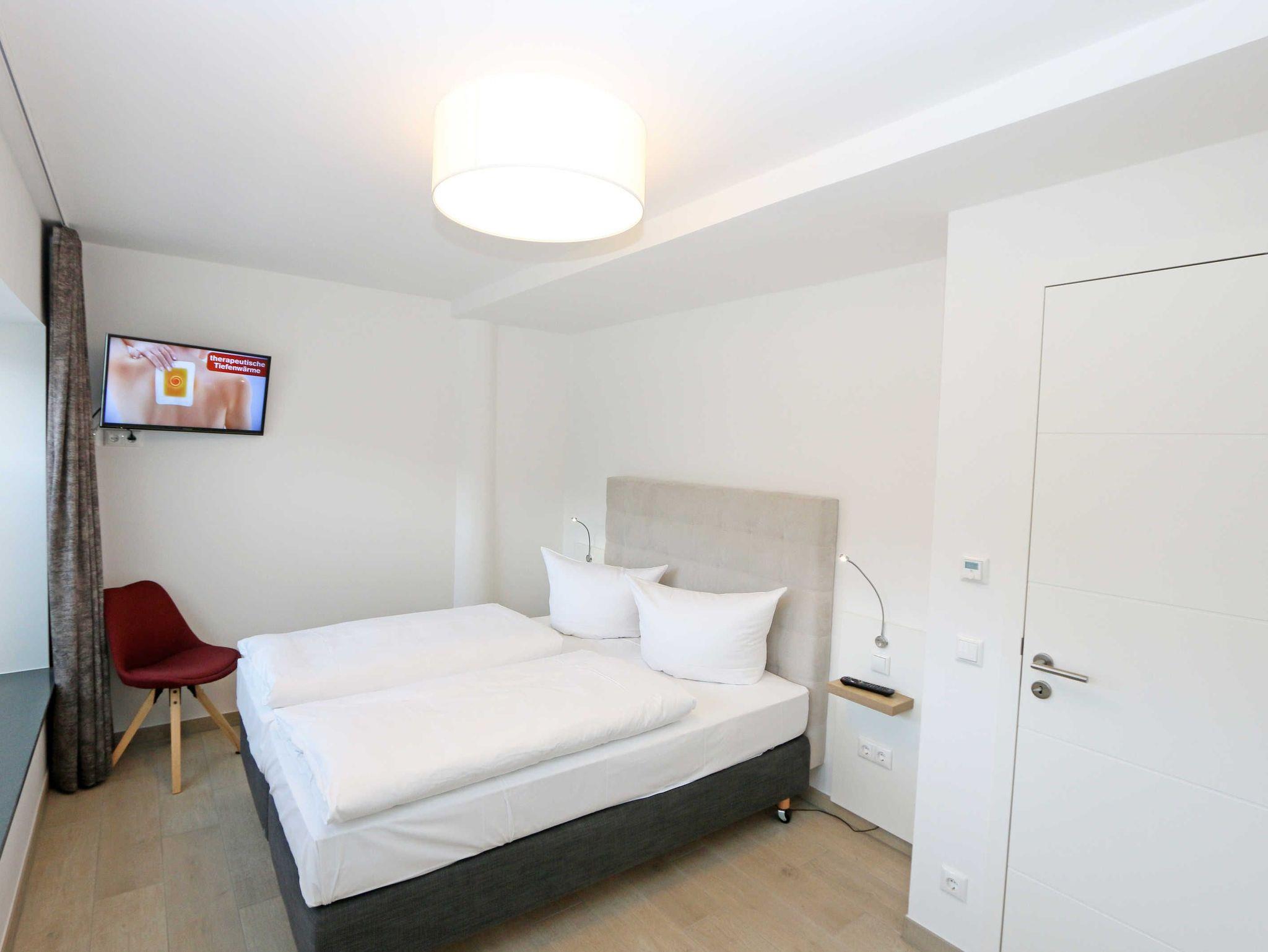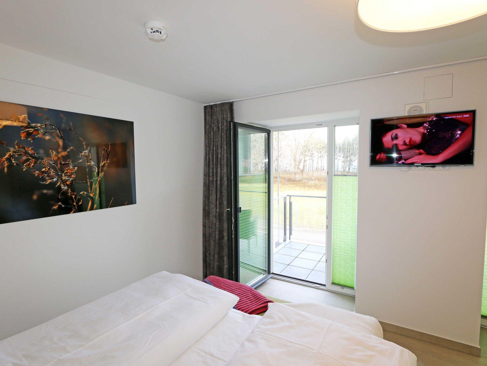 Ihr Strandapartment 0.3 befindet sich im sanierten, denkmalgeschützten Koloss von Rügen. Die Wohnung liegt nur wenige Schritte, getrennt durch Strandkiefern und sanften Dünen, vom wohl schönsten Strand Rügens entfernt. Der feinsandige, breite Strand lockt zu ausgiebigen Spaziergängen und Aktivitäten im wohltuenden Meeresrauschen ein. Ihr Urlaubsort Prora liegt ca. 3 km entfernt von Binz, dem lebhaften Urlaubsmagneten von Rügen mit seiner bekannten Bäderarchitektur. Lassen Sie sich faszinieren von der Sie umschließende Natur Rügens, mit den malerischen Kreidefelsen und satten Wäldern. Das im Erdgeschoss gelegene kleine Café mit Bäckerei sorgt für Ihr weiteres Wohl. In der Nähe sind Restaurants, Bars und Pizzerien. Erholung und Entspannung finden Sie in Ihrer wohnungseigenen Sauna. Das wird Ihren Urlaub unvergesslich machen.