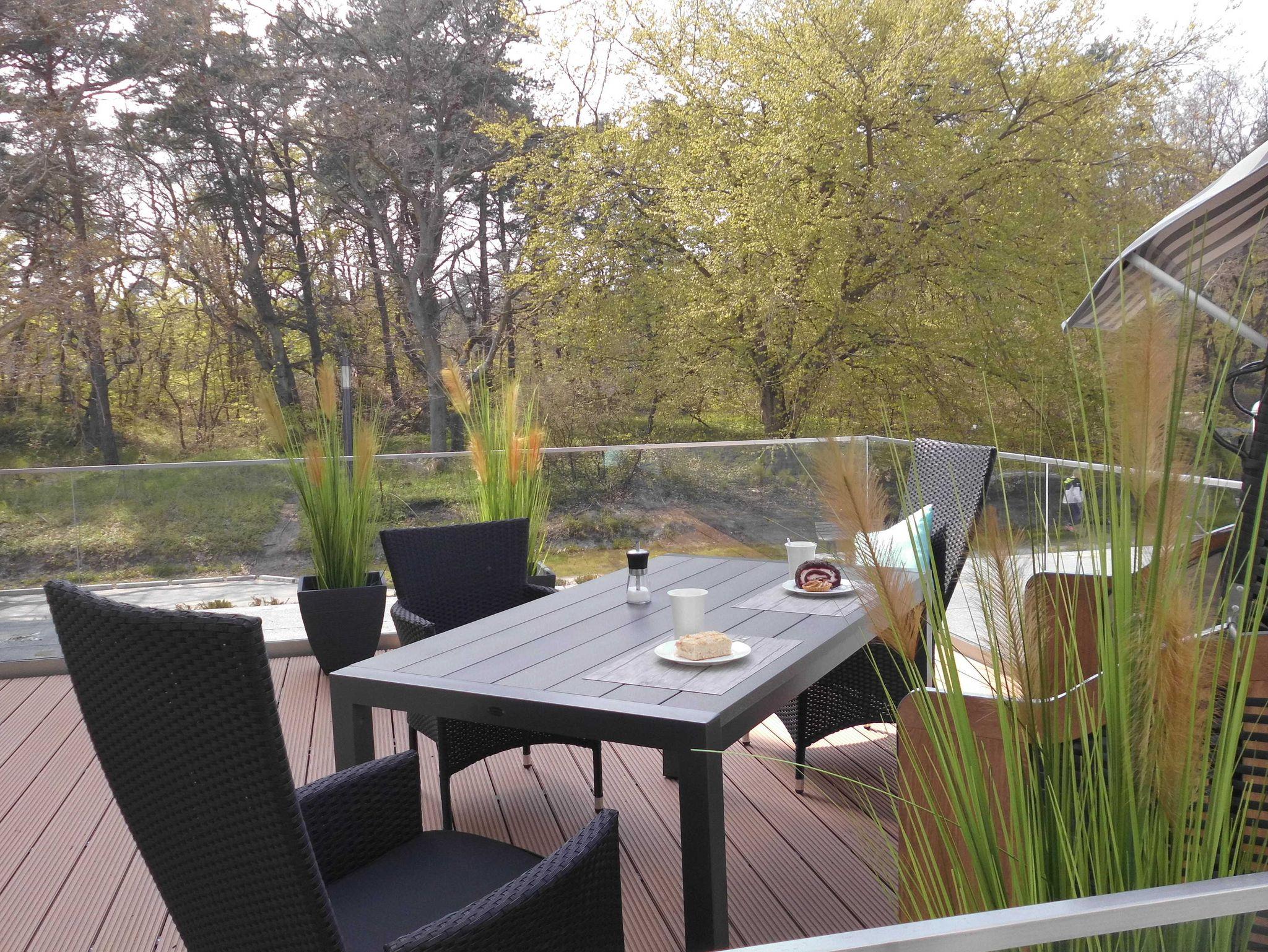 Besonders für Sonnenhungrige ist diese Wohnung mit 68 qm ideal: eine 30 qm große Dachterrasse, mit eigenem Strandkorb, erstreckt sich vor dem Wohnbereich.