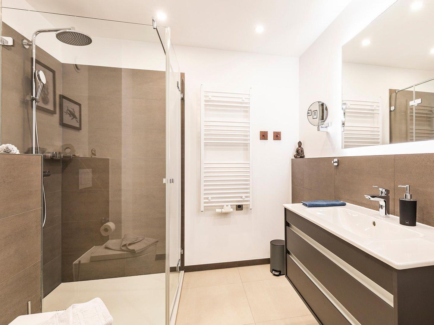 - Badezimmer 1: Regendusche, WC, Haartrockner