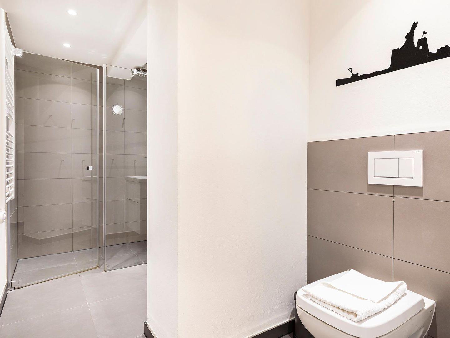 Angenehme Nachtruhe finden Sie in Ihrem abgetrennten Schlafzimmer in einem hochwertigen Boxspring-Bett. Zwei Bettkästen darunter bieten Ihnen weitere Staufläche. Das hochwertig ausgestattete Bad, inclusive Föhn und Rainshower-Dusche bieten weitere Annehmlichkeiten für Ihren Aufenthalt. Das WC ist optisch durch einen angenehmen Mauervorsprung zu dem restlichen Bad getrennt und bietet somit mehr Privatsphäre.