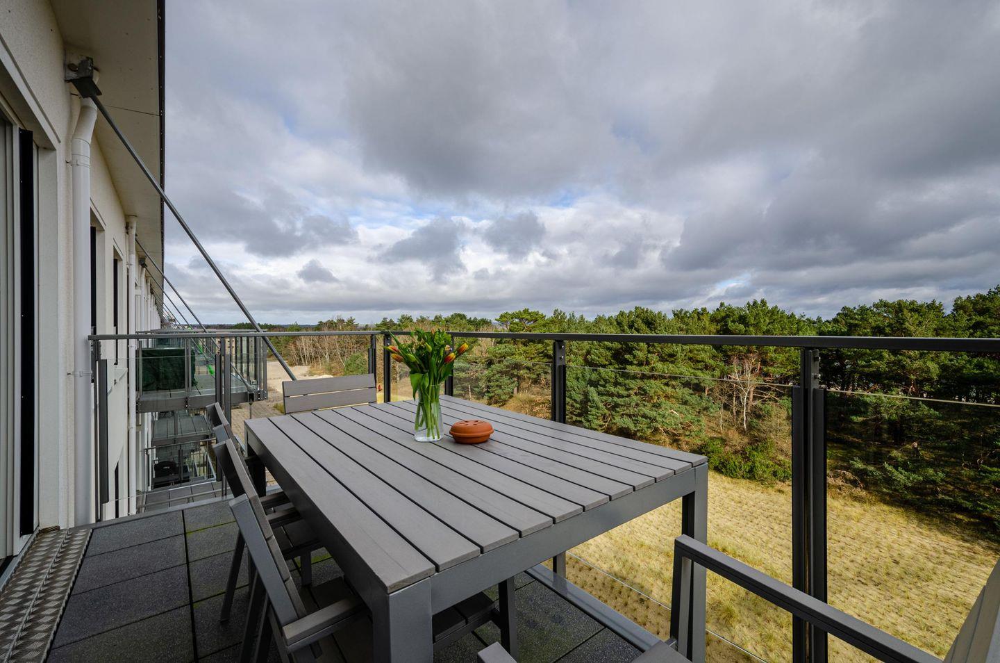- Balkon mit Tisch und 4 Stühlen, Blick auf das Meer