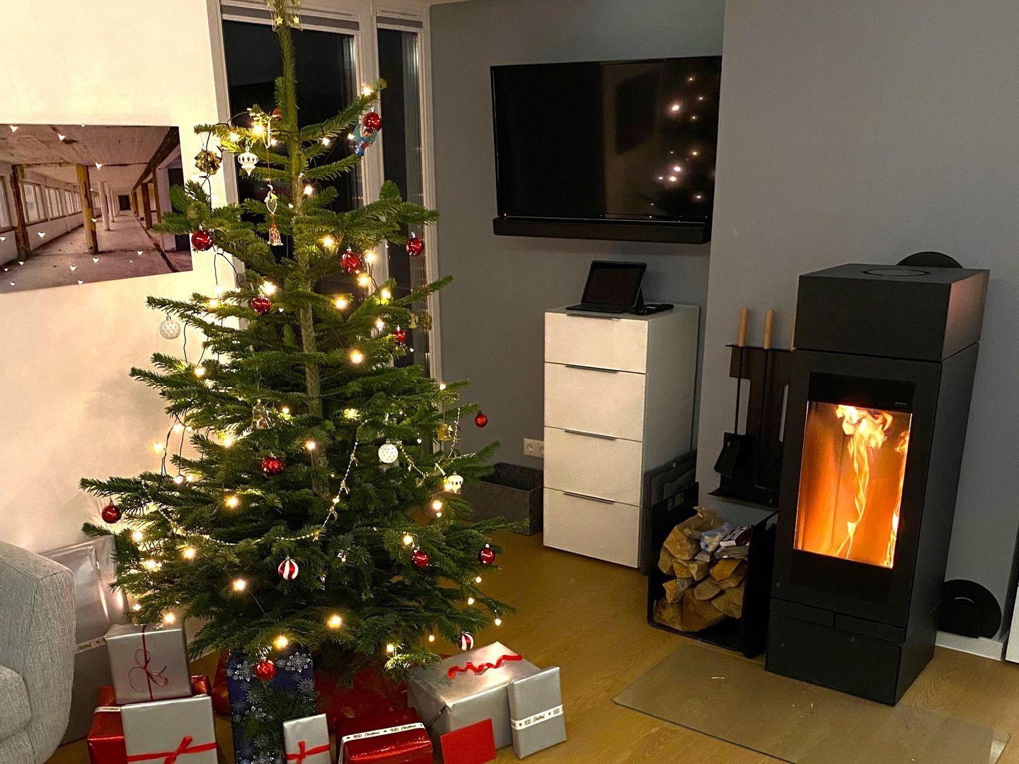 - Wohn-/Essbereich: Sofa, TV (Magenta-TV, Netflix-fähig), Bluetooth-Soundbar, Echtholz-Kaminofen (Kaminholz ist nicht im Leistungsumfang inbegriffen), Zugang zum Balkon
