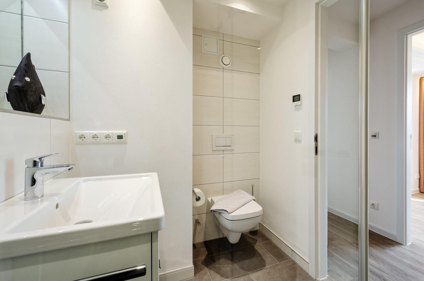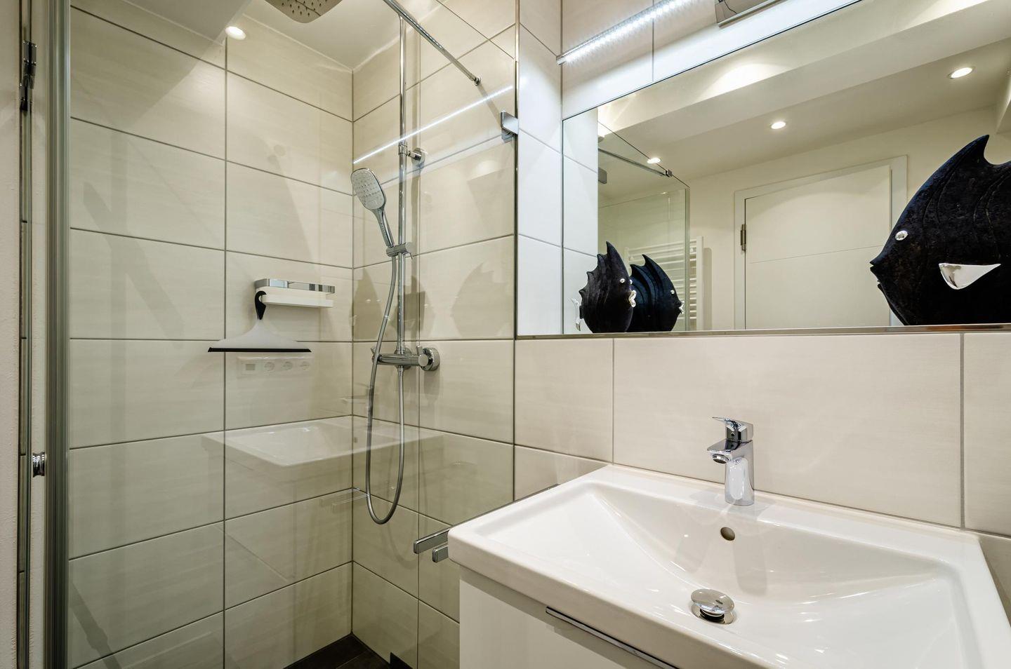 - Badezimmer: Regendusche, WC, Haartrockner