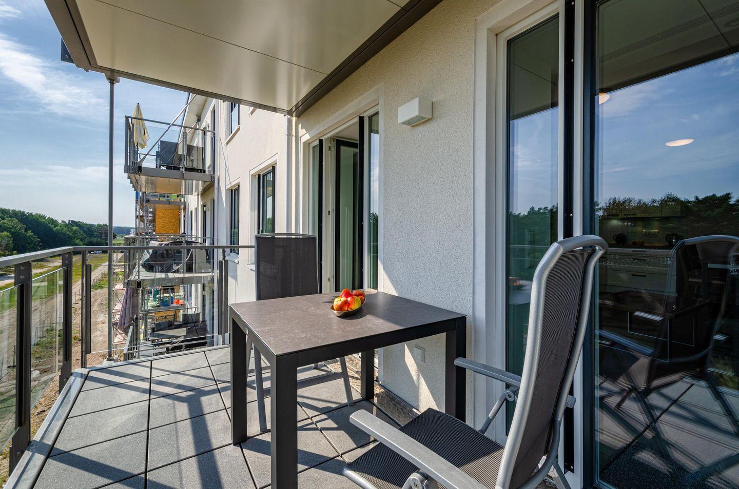 FeWo Ostwind: 55 m² Apartment mit Balkon, Meerblick & Sky-Sauna-Nutzung