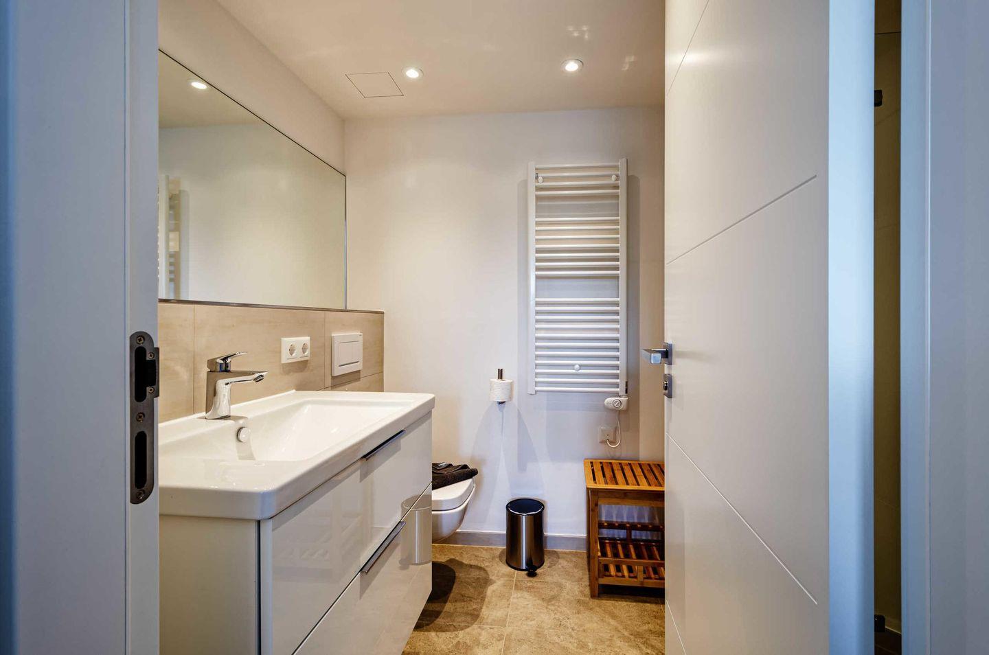 In dem Badezimmer mit Dusche und WC findet sich ausreichend Platz, um sich morgens zu erfrischen und abends den Tag ausklingen zu lassen. Durch ein Gäste-WC wird es Ihnen hier auch zu dritt nicht zu eng.