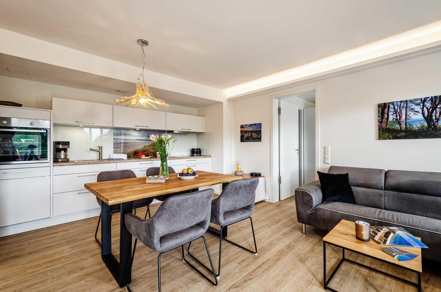 Wenn Sie die Sehnsucht nach Mee(h)r packt, dann sind Sie in der Ferienwohnung Se(e)hnsucht genau richtig. Ein Ausblick vom Balkon mit Blick zur Ostsee erfüllt das Herz und entspannt den Geist. Die Küche mit moderner Ausstattung und das gemütliche Wohnzimmer lädt Sie bei jedem Wetter ein, zu verweilen. Das Entertainment kommt auch hier nicht zu kurz, da das Apartment mit TV und W-Lan ausgestattet ist.