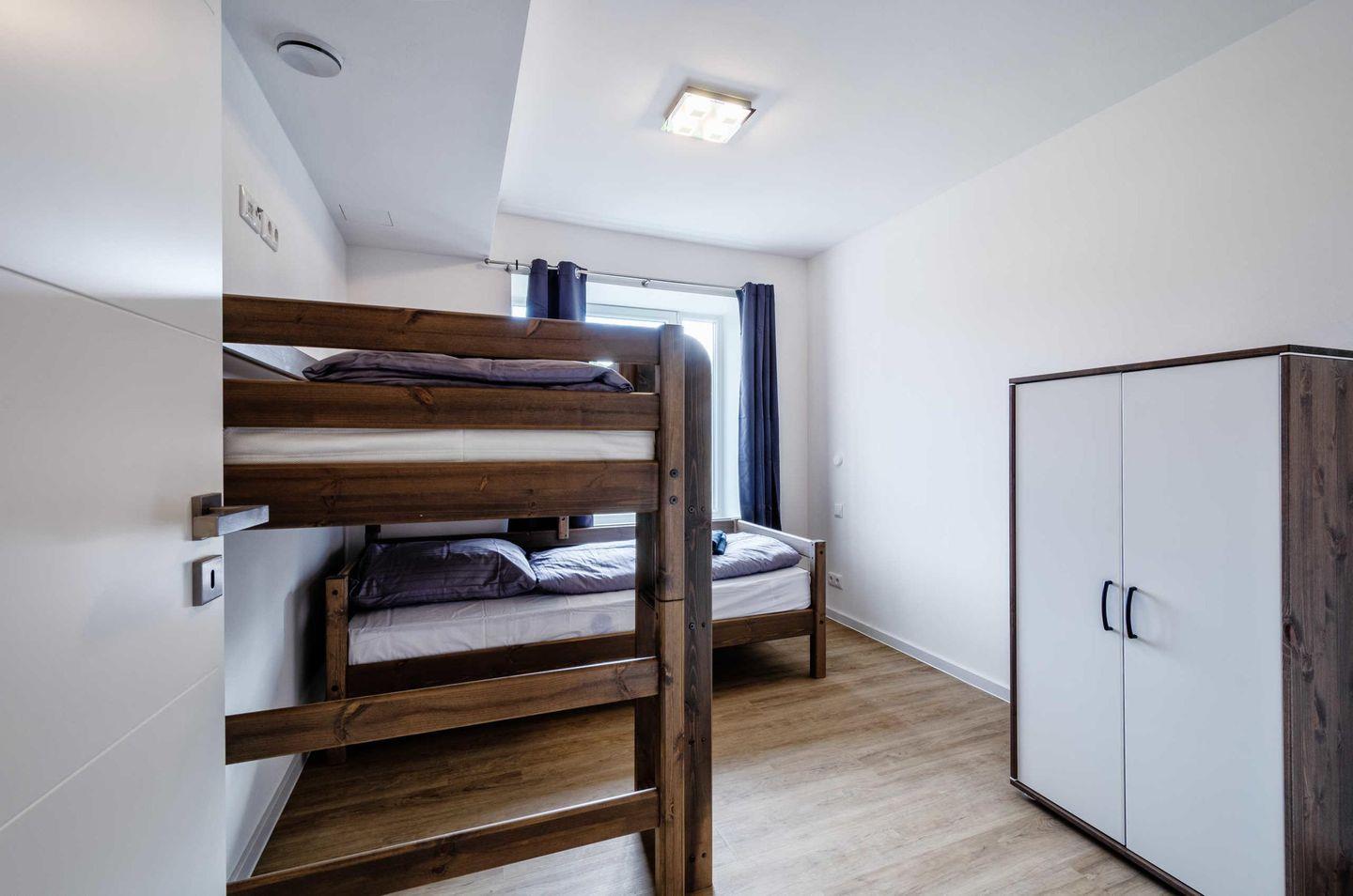 Diese stilvoll eingerichtete 3 Zimmer Ferienwohnung bietet Platz für bis zu vier Personen mit zwei eingerichteten Schlafzimmern. Ein Schlafzimmer ist mit einem Doppelbett und das andere mit einem Etagenbett ausgestattet.