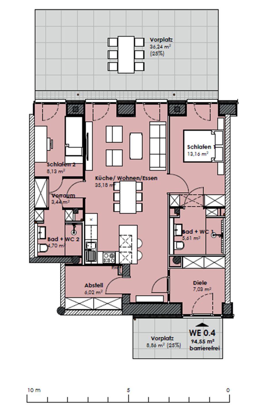 - Wohn- /Essbereich: Sofa, Sitzbereich, Essbereich, TV
