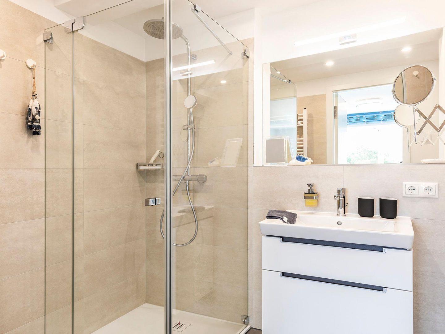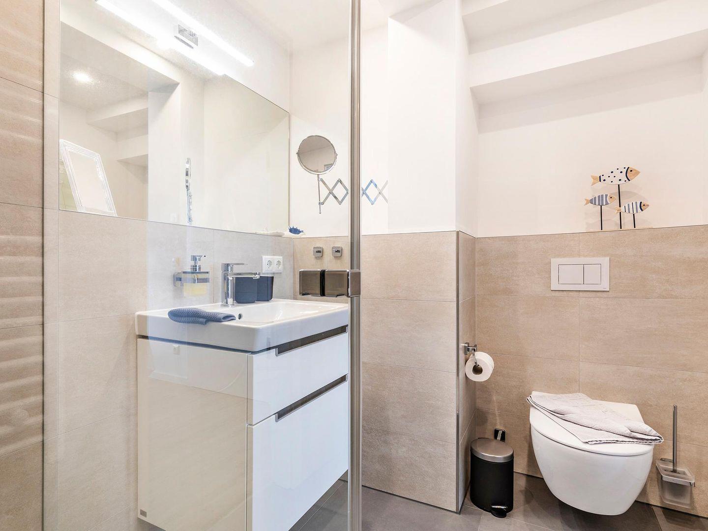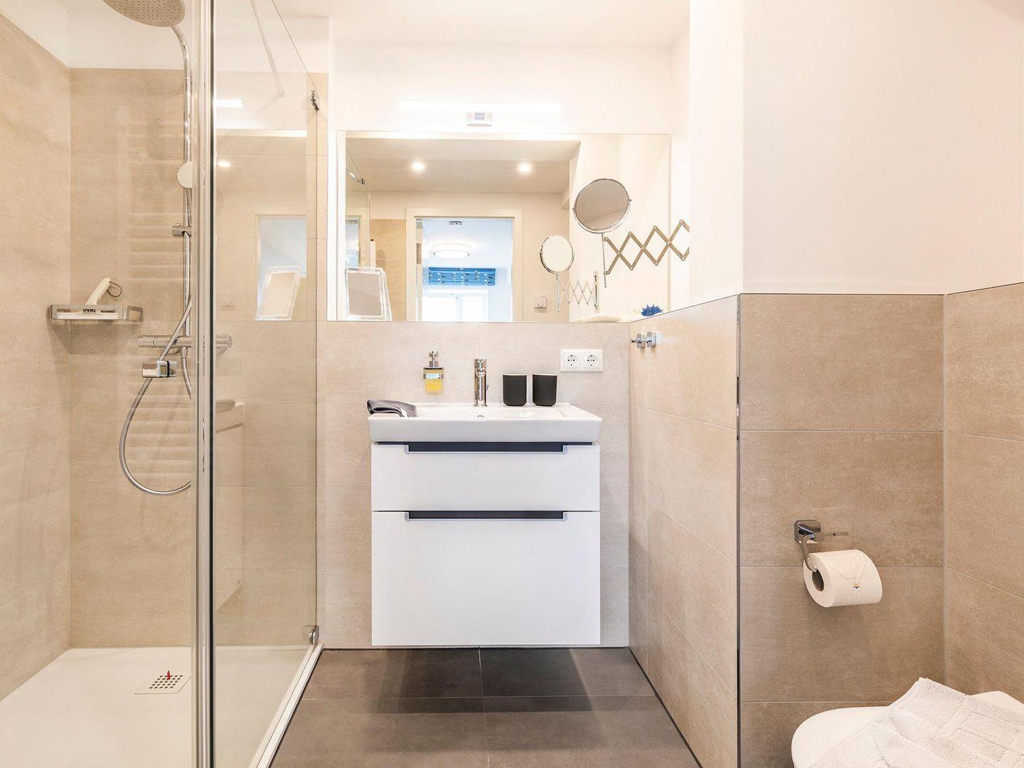 - Badezimmer 1: Regendusche, WC, Haartrockner