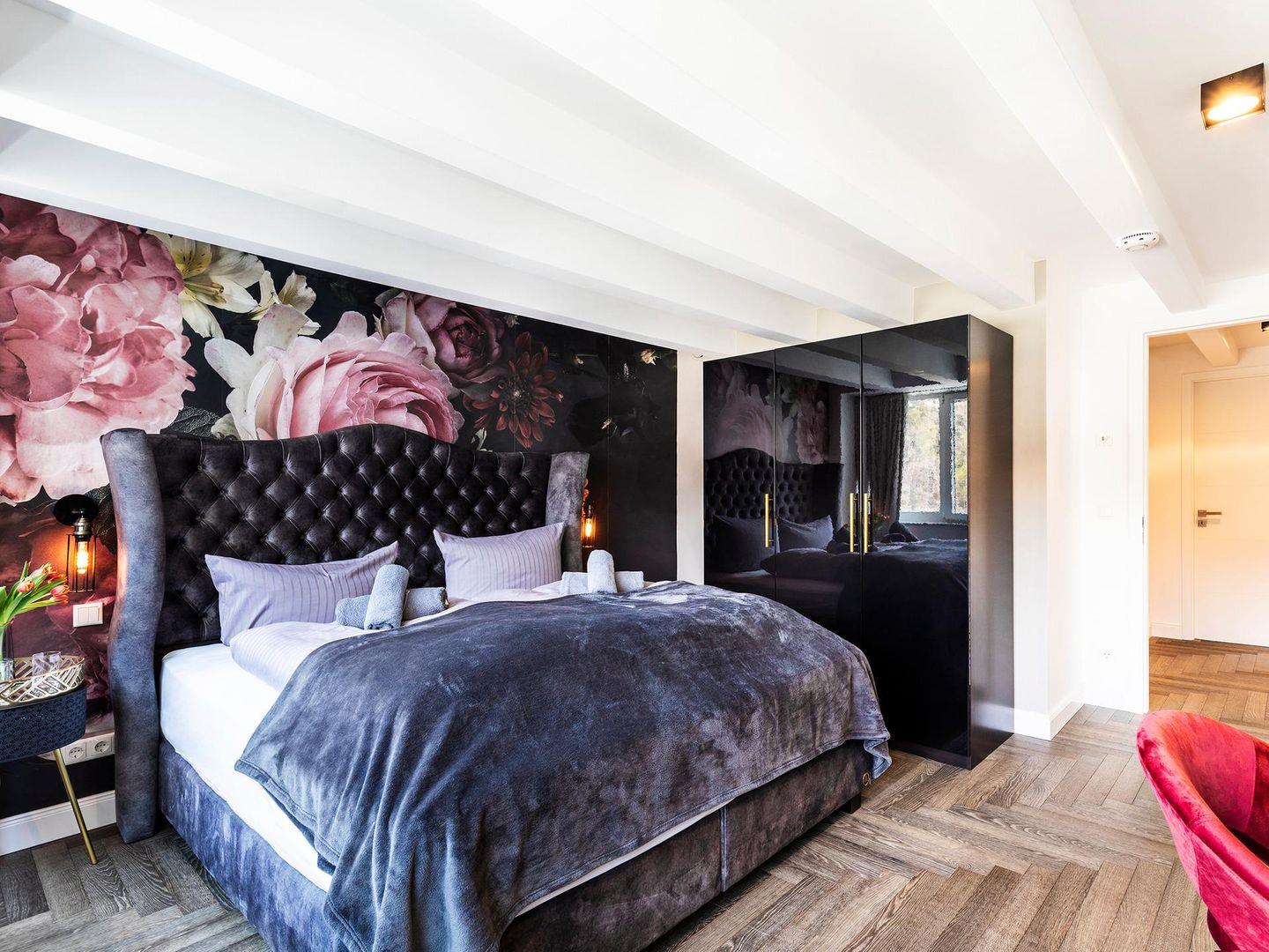 - Schlafzimmer 1 (Seeseite): Doppelbett (180x200), TV, Zugang zum Balkon