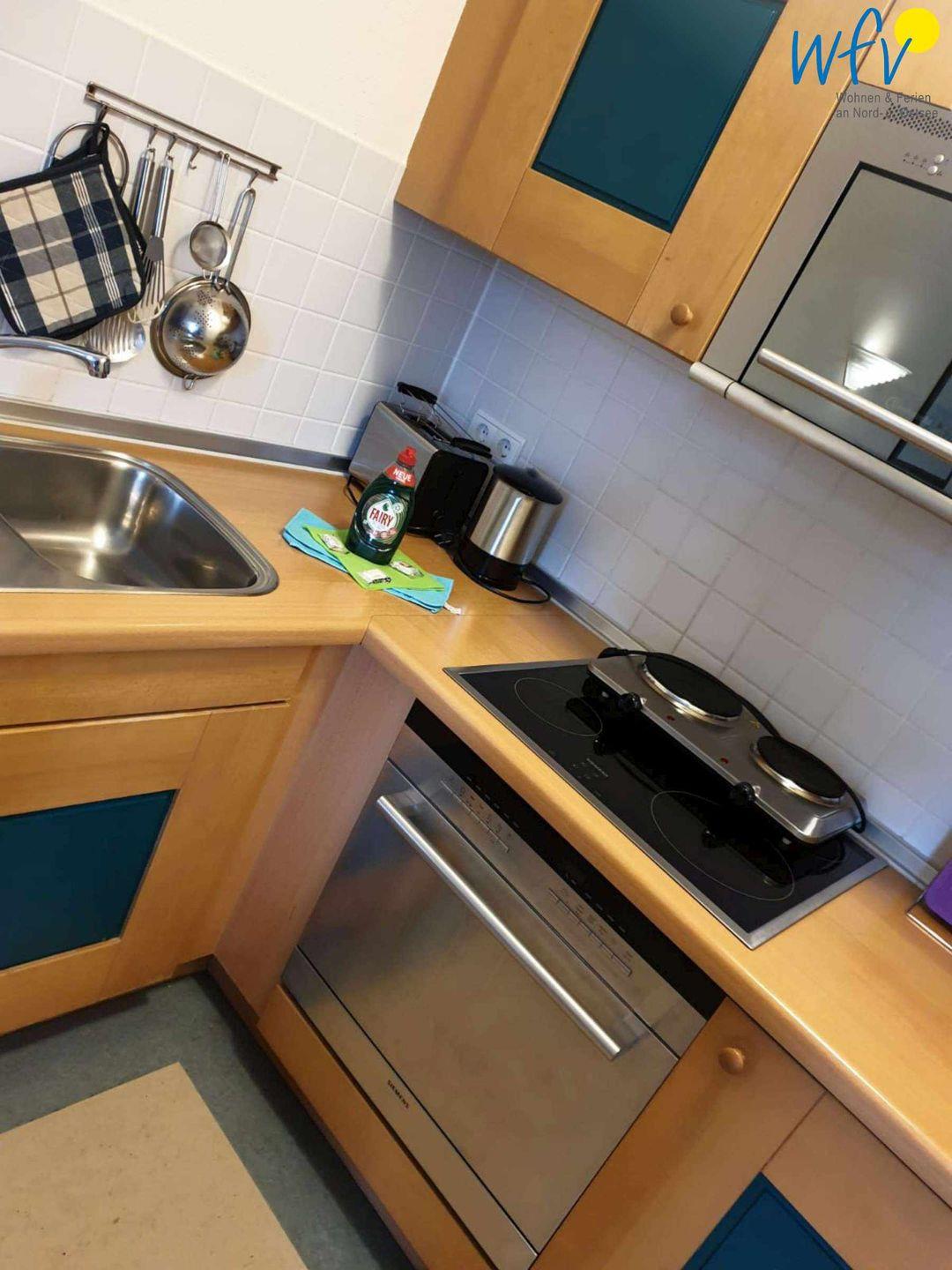 Die moderne Einbauküche ermöglicht Ihnen eine einfache Selbstverpflegung in Ihrem Urlaub auf Rügen. Ausgestattet ist sie u.a. mit einem Ceranherd, einem Backofen, einer Mikrowelle und einer Spülmaschine.